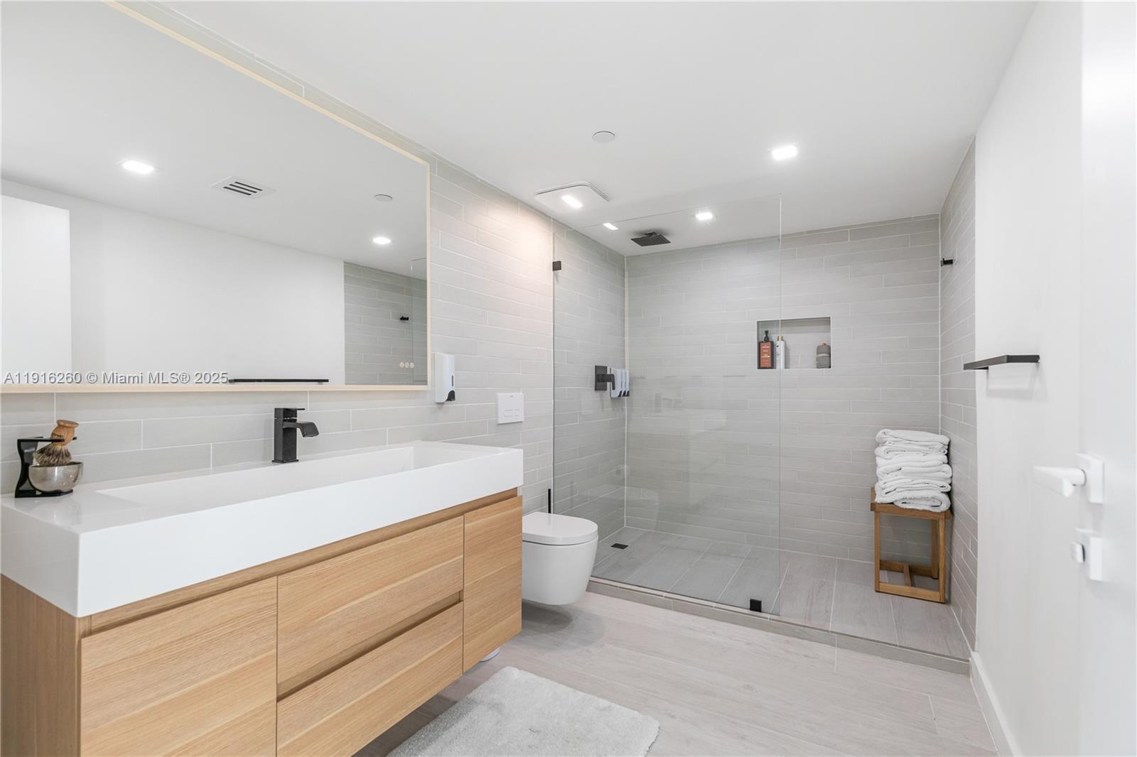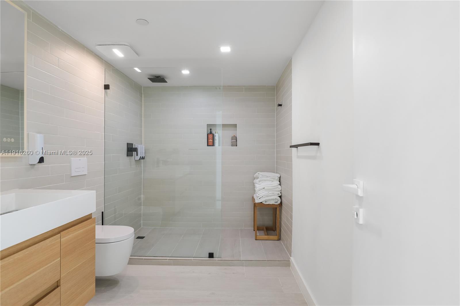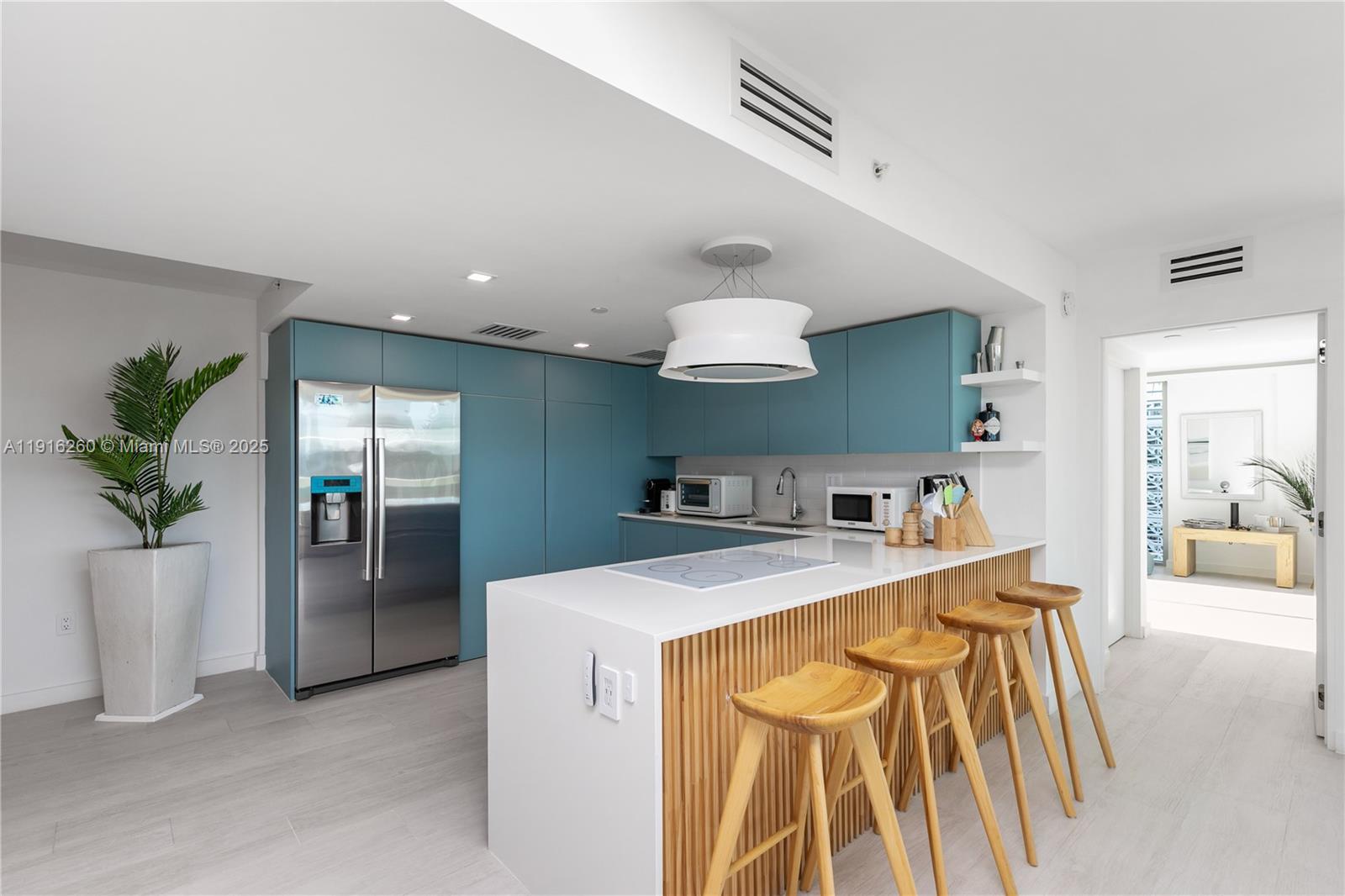 Experience luxury island living in this beautifully furnished (with kitchen amenities) and newly remodeled large 1-bedroom, 2-bath Penthouse Floor residence in the heart of Bay Harbor Islands. This spacious modern condo features elegant designer finishes, a brand-new Bosch refrigerator, electric blinds, curated designer furniture, and an amazing spacious balcony ideal for relaxing or entertaining. Floor-to-ceiling windows fill the space with natural light, highlighting the open-concept layout and sophisticated lighting design. Enjoy resort-style amenities including a rooftop infinity pool, jacuzzi, BBQ and entertainment areas with panoramic skyline views. The boutique building also offers a stylish lobby, fitness area, and secure 2-car tandem garage parking. Available move in Jan 1, 2026