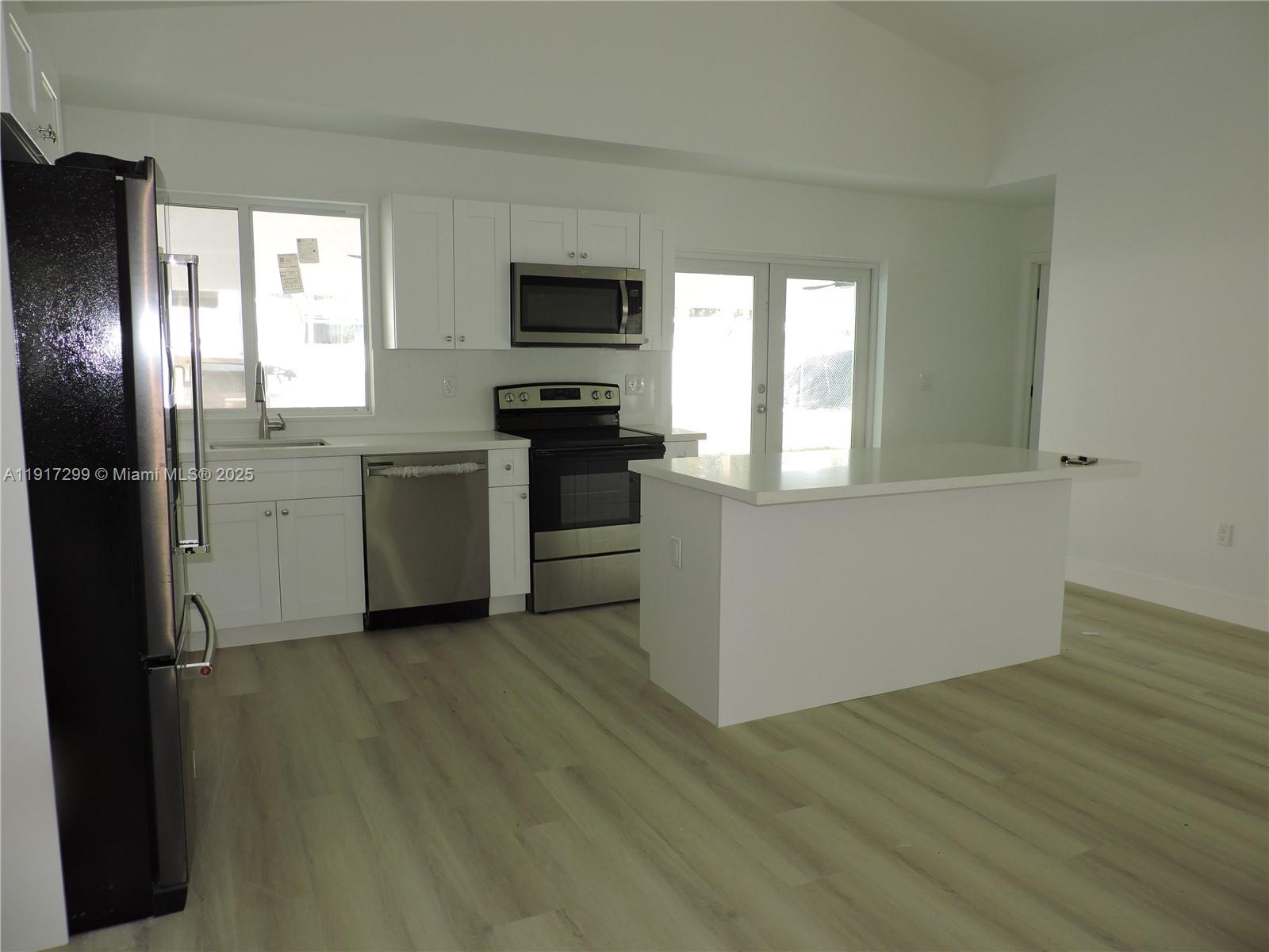Completely rebuilt and brand-new single-family home for rent in Homestead, just minutes from the Turnpike. This beautifully renovated property features 3 bedrooms and 2 full bathrooms, including a master suite with double closets, dual-sink vanity, separate bathtub, and walk-in shower. Modern open layout, brand-new kitchen, and high-quality finishes throughout. The home offers a fully fenced backyard and ample parking for at least three vehicles. Water and electricity are included—an exceptional value. Immediate occupancy. No HOA, fast approval and hassle-free move-in.