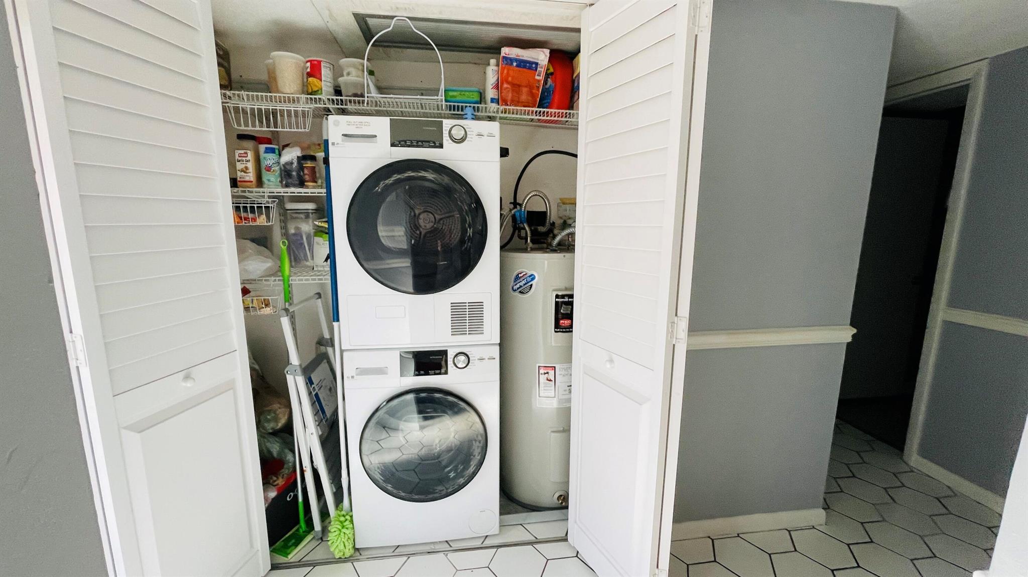 Beautifully appointed and rarely available furnished 2-bedroom, 2-bath condo in Century Village, West Palm Beach. This updated and mostly renovated unit is located on the second floor of a quiet, well-maintained building. Features include central A/C, an in-unit washer and dryer, and a glass-enclosed patio overlooking a lovely garden view.Both bedrooms offer twin beds, and the primary suite includes a separate walk-in closet. The home is finished with tile and laminate flooring throughout, providing low-maintenance comfort.Residents enjoy access to the many Century Village amenities, including community pools, clubhouse facilities, and on-site bus service.
