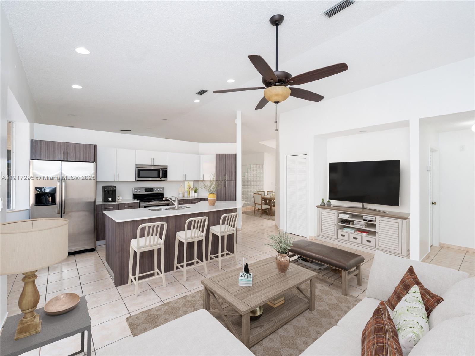 Stunning home with tall ceilings, a split floorplan, and a remodeled kitchen featuring stainless steel appliances & stone countertops. Abundant natural light flows through ample windows, highlighting the open kitchen, (which is a kitchen-family space), formal living and dining areas. Enjoy the covered patio and pool in your very own private backyard oasis. Tiled throughout, the property boasts recessed lighting, fresh paint, walk in closets, pantries, a laundry room and a 2 car garage. With a spacious driveway and fully fenced yard, there's even room for a boat, RV, and extra cars. This residence is ready to move into right away with No Association to worry about! Perfect for comfortable living and entertaining! Call to make this your home today!