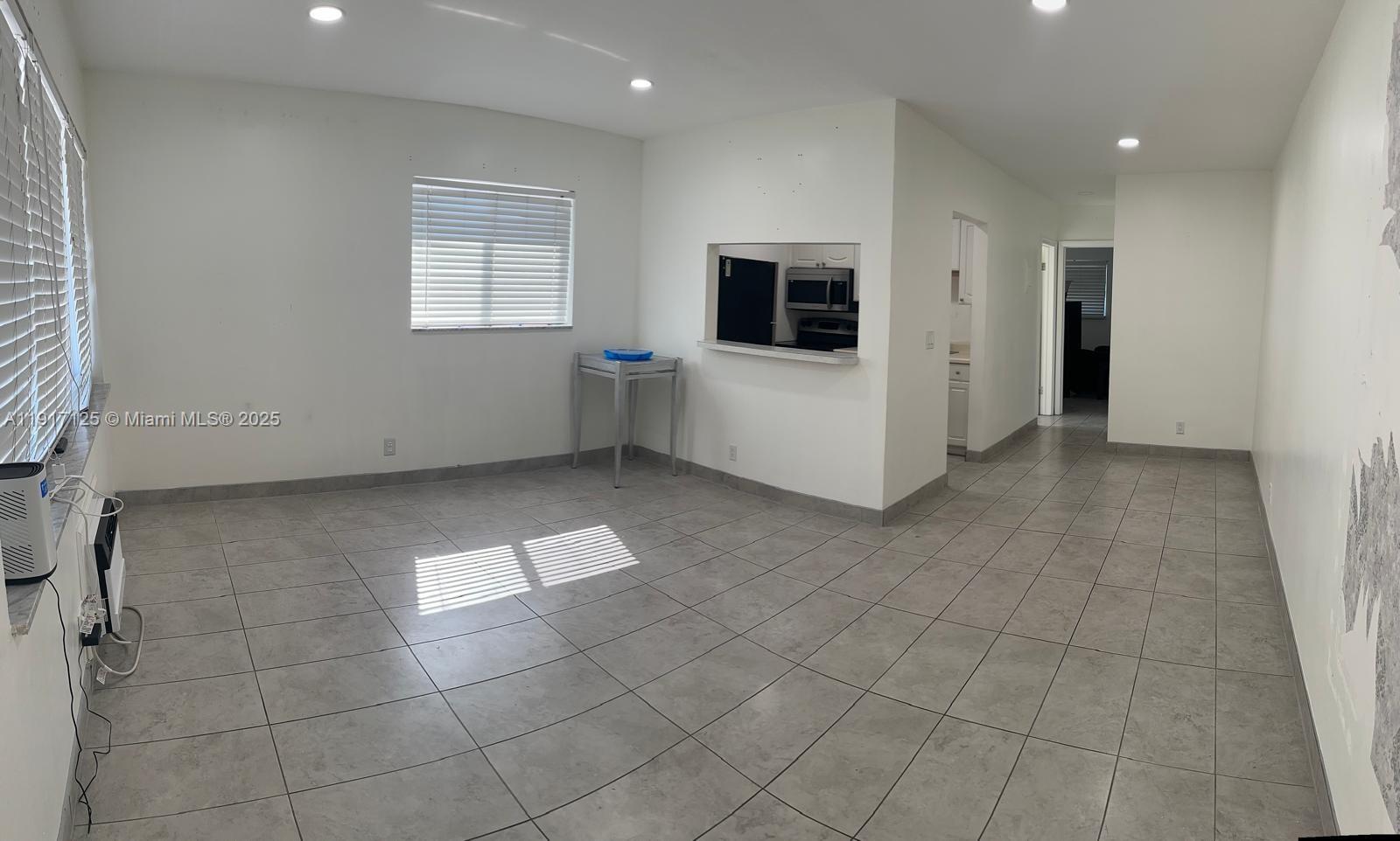 Clean and functional unit with tiled floors, recessed lighting, and a practical layout. Features a classic kitchen with white cabinetry, pass-through window, and essential appliances. Includes a full bathroom, utility room with shelving, built-in A/C units, and generous closet space. Bright, move-in ready, and easy to furnish. Association requires a minimum credit score of 660. Initial lease is 6 months, renewable to a 1-year contract. Ideal for comfortable living in a quiet, well-maintained community.