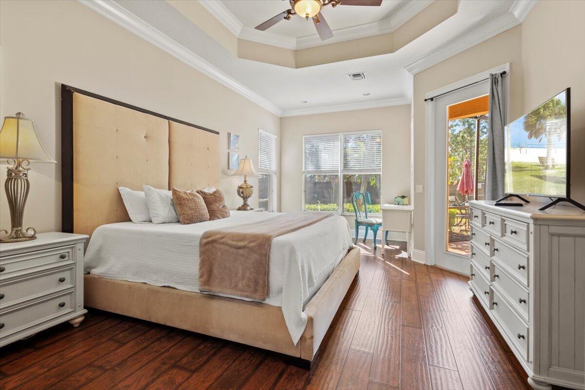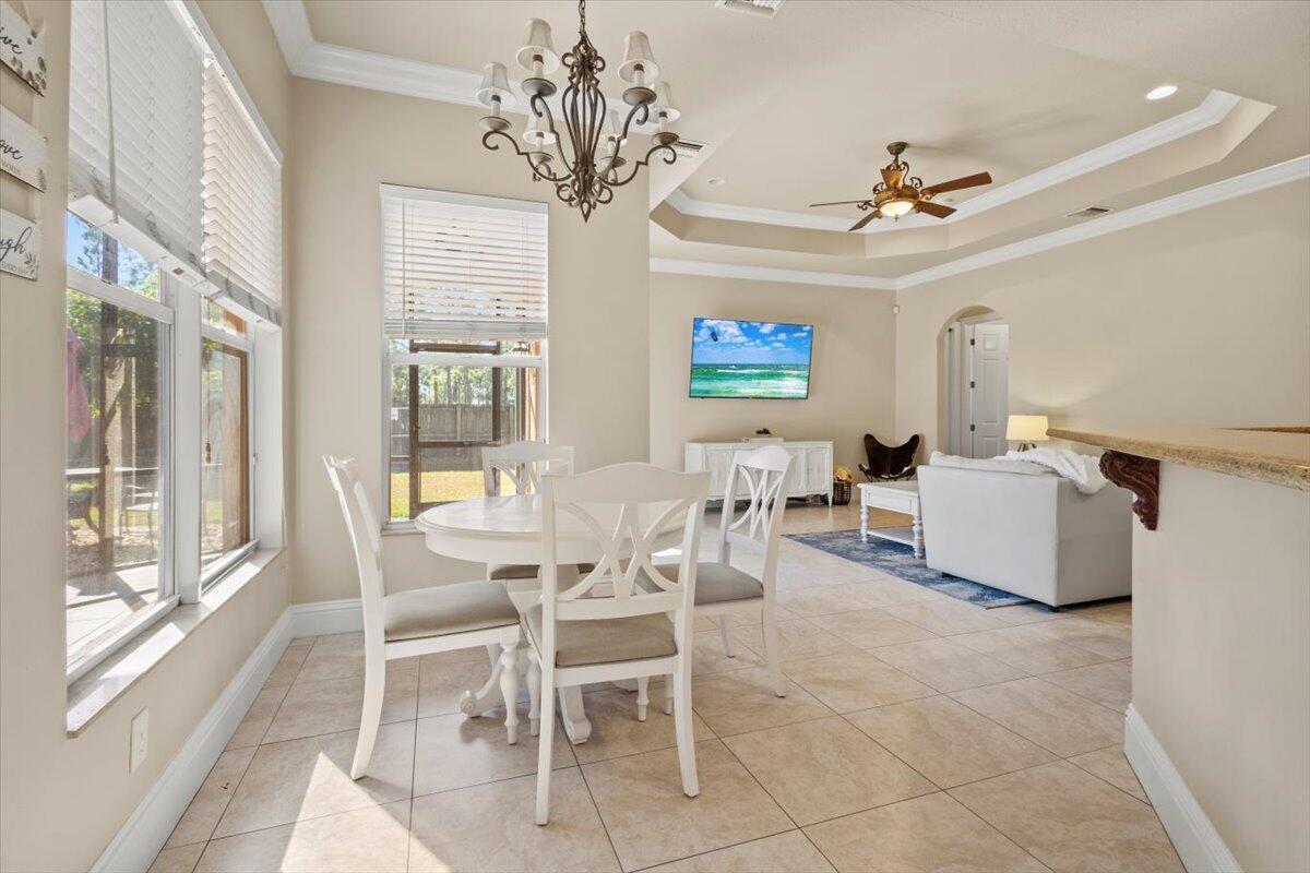 Welcome to 5829 NW Zenith Dr, a beautifully maintained and furnished 4-bed, 3.5-bath home with an open layout, abundant natural light, high ceilings, and upgraded finishes. The gourmet kitchen offers stainless steel appliances and granite counters, flowing into bright living and dining areas that lead to a screened lanai. The spacious master suite features a walk-in closet and spa-style bath with dual vanities, soaking tub, and separate shower. Enjoy a private fenced yard with raised garden beds--perfect for growing fruits and veggies. Home includes solar panels; electricity paid to owner monthly ($250)