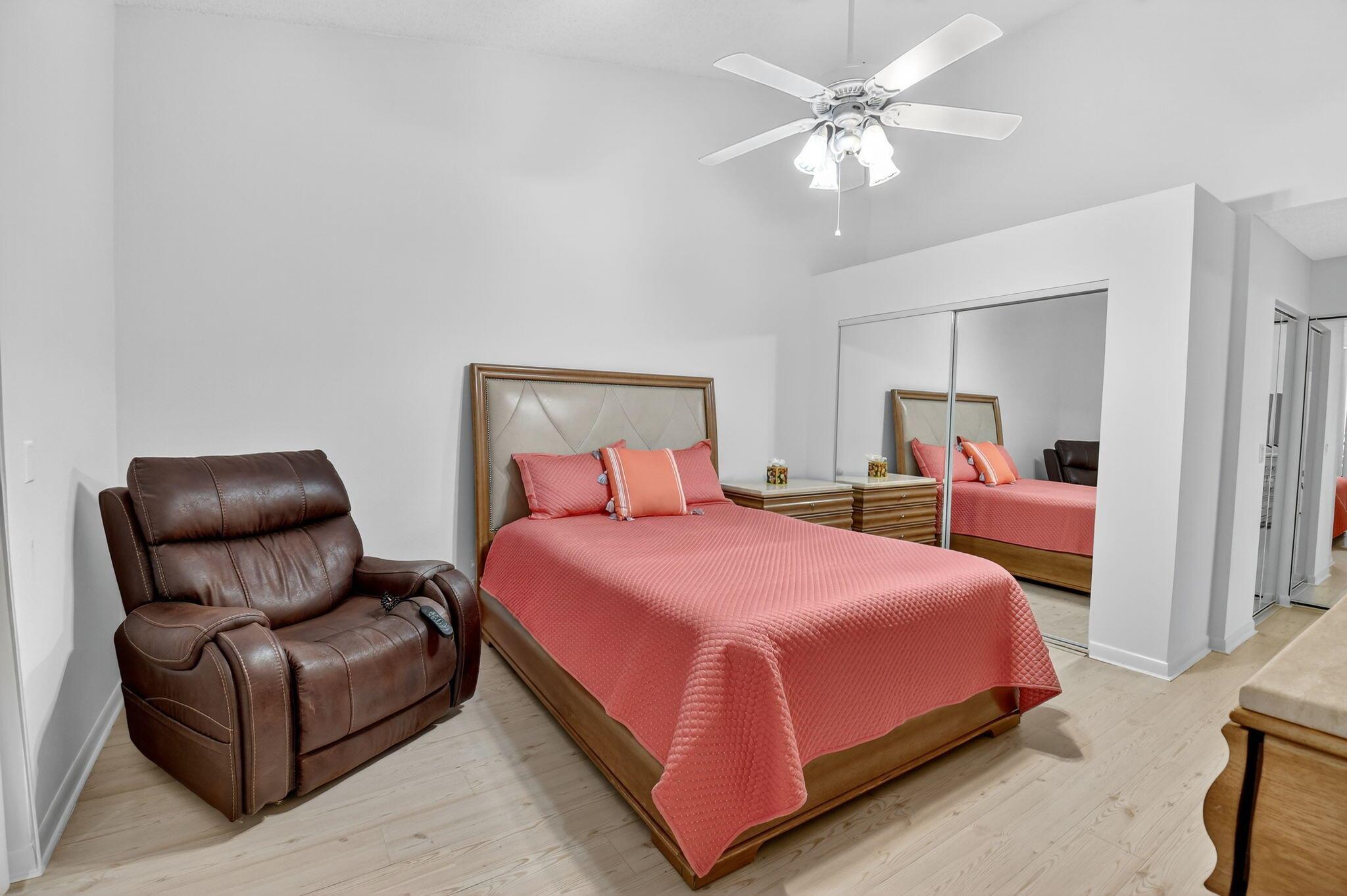 This Grandi model condo boasts its own private elevator and private staircase just inside the front door. Once upstairs, you will be greeted by a freshly painted home with soaring vaulted ceilings and a bright, open layout designed for comfortable living and entertaining. The generous floor plan offers two bedrooms plus a den that can easily be converted into a third bedroom to suit your needs. The updated, spacious kitchen is sure to inspire your inner chef. Features include granite countertops and matching backsplash, stainless-steel appliances, a double oven, a large pantry, and abundant storage space. Retreat to the master suite, which offers a large walk-in closet, linen closet and en-suite bathroom, complete with dual sinks, a vanity, a relaxing Roman tub, and walk-in shower.
