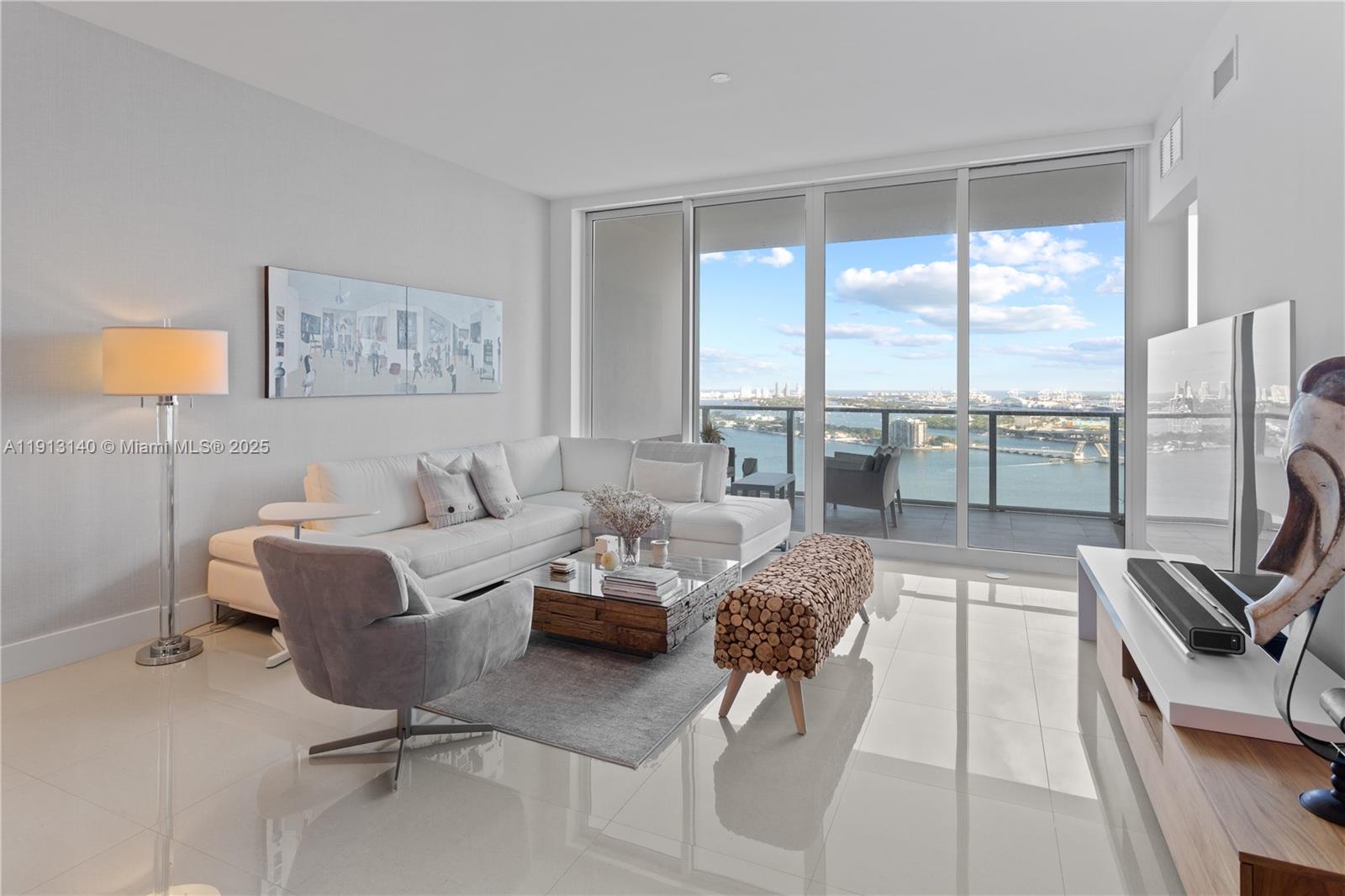 Stunning high-end furnished residence with breathtaking bay and ocean views from a 10-ft deep balcony. Private elevator and foyer, spacious 3 bed / 3 bath layout, open kitchen with large island, floor-to-ceiling impact windows, custom electric blinds, walk-in closet, top-of-the-line appliances, 10-ft ceilings, and separate laundry room. Paramount Bay, designed by Arquitectonica with interiors by Lenny Kravitz, offers 5-star amenities including sunrise & sunset pools, two-story fitness center, kids & teens rooms, party room with chef’s kitchen.