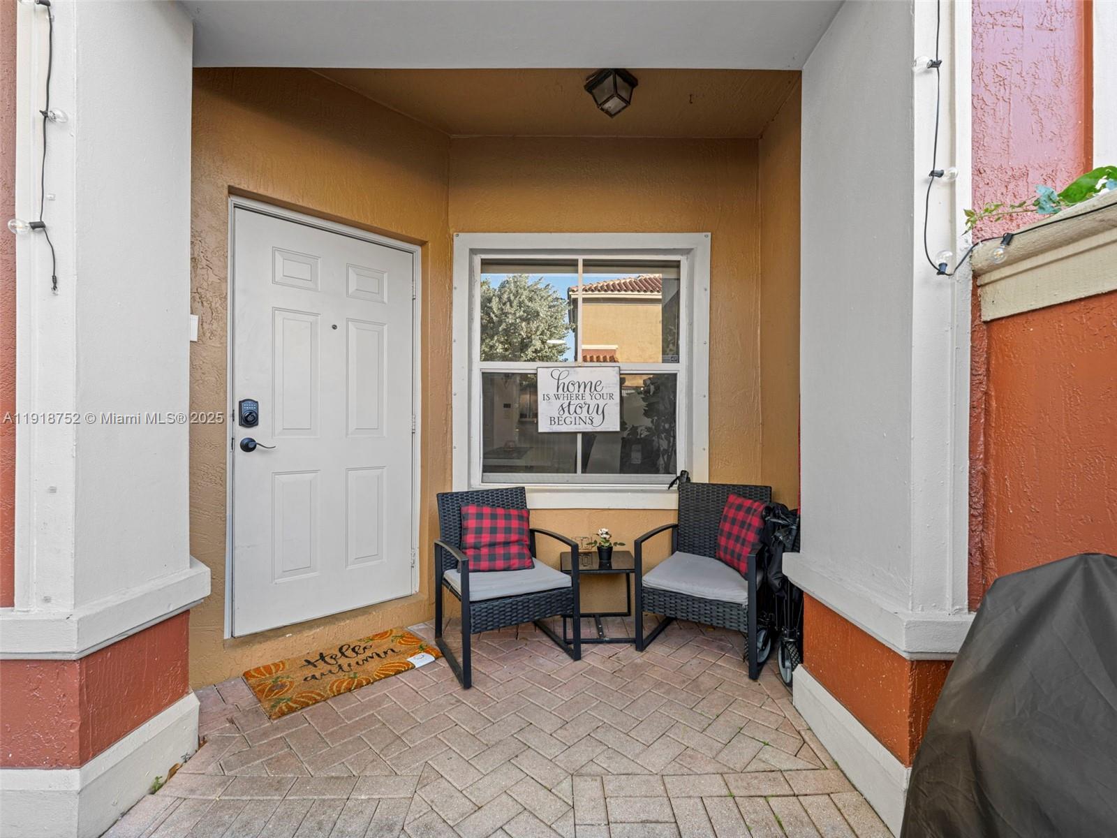 Welcome to this beautiful and inviting townhome located in the gated community of The Gates in the heart of Doral. This charming 2 bedroom, 2.5 bathroom home offers a comfortable layout with a bright and open living area downstairs, a full size washer and dryer, and a private front patio that is perfect for adding plants or enjoying time with family and guests. Upstairs, both bedrooms feature their own ensuite bathrooms, offering privacy and convenience. The community provides secure guard gate entry around the clock and a refreshing pool for residents to enjoy. You will love being close to major highways, shopping, dining, parks, and everything Doral has to offer. A wonderful place to call home.