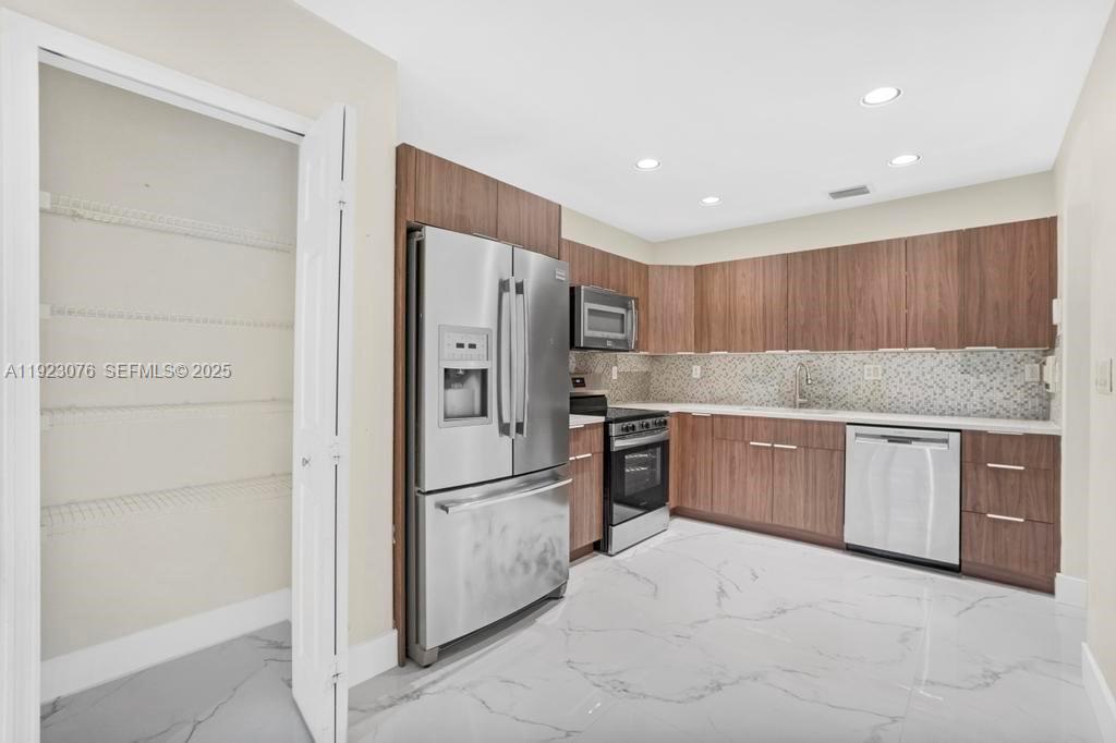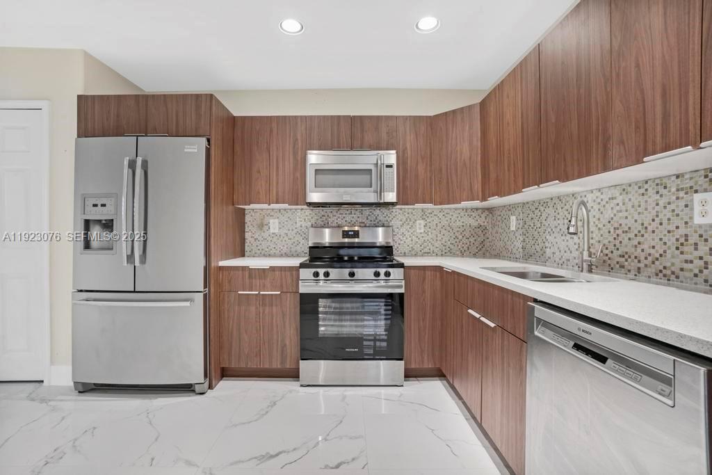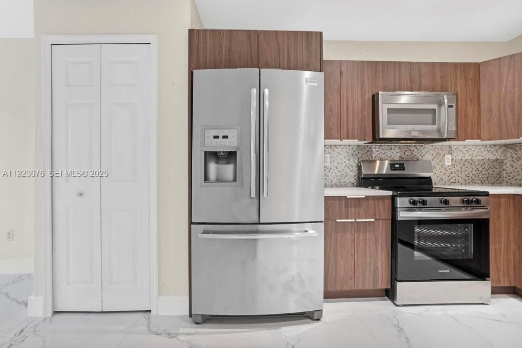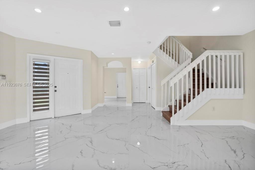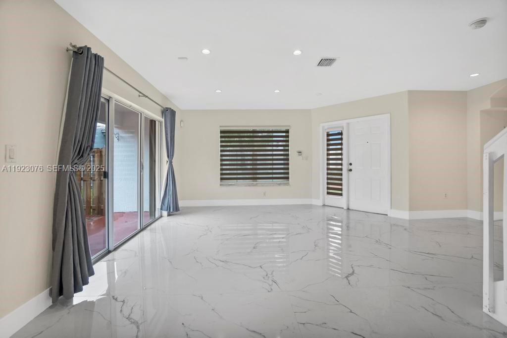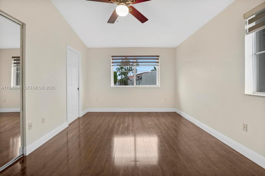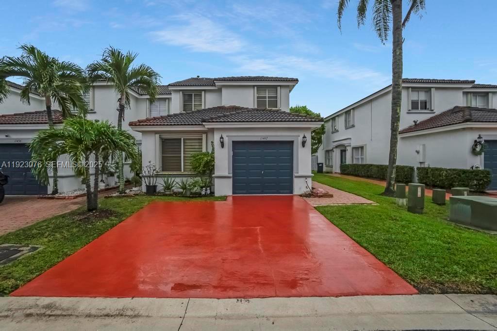 This gorgeous CORNER townhouse in Dimensions at Doral has many fresh upgrades, including NEW FLOORING on the first floor and on the stairs, NEW KITCHEN CABINETS, and a NEW VANITY+MIRROR in the main suite's bathroom. It is a fantastic option in a charming GATED community. The first floor offers a spacious living/family room, a formal dining area with its own window, a kitchen with a large breakfast area and a pantry, a half bath, a storage under the stairs and another storage next to the half bath, and a fenced patio with even more storage there, too! Upstairs, you’ll find the main suite, two more bedrooms and a den, ideal for an office, playroom, or flex space. Every bedroom features custom closets, a ceiling fan and zebra blinds, and the home also has accordion shutters throughout for easy storm preparation. The full size washer and dryer are in the one car garage. This association is about half a mile from NW 41st Street, with quick access to the Turnpike and nearby shopping, dining, Doral's top rated schools, and RIGHT NEXT to the Trails & Tails Park, making it a fantastic option for pet lovers. The owners are accepting tenants with pets. The only association requirement reg. pets is that each pet be registered with payment of $85 pet fee/pet. Once you visit, you’ll appreciate how bright, open, and roomy this corner layout feels. Renter's insurance required.