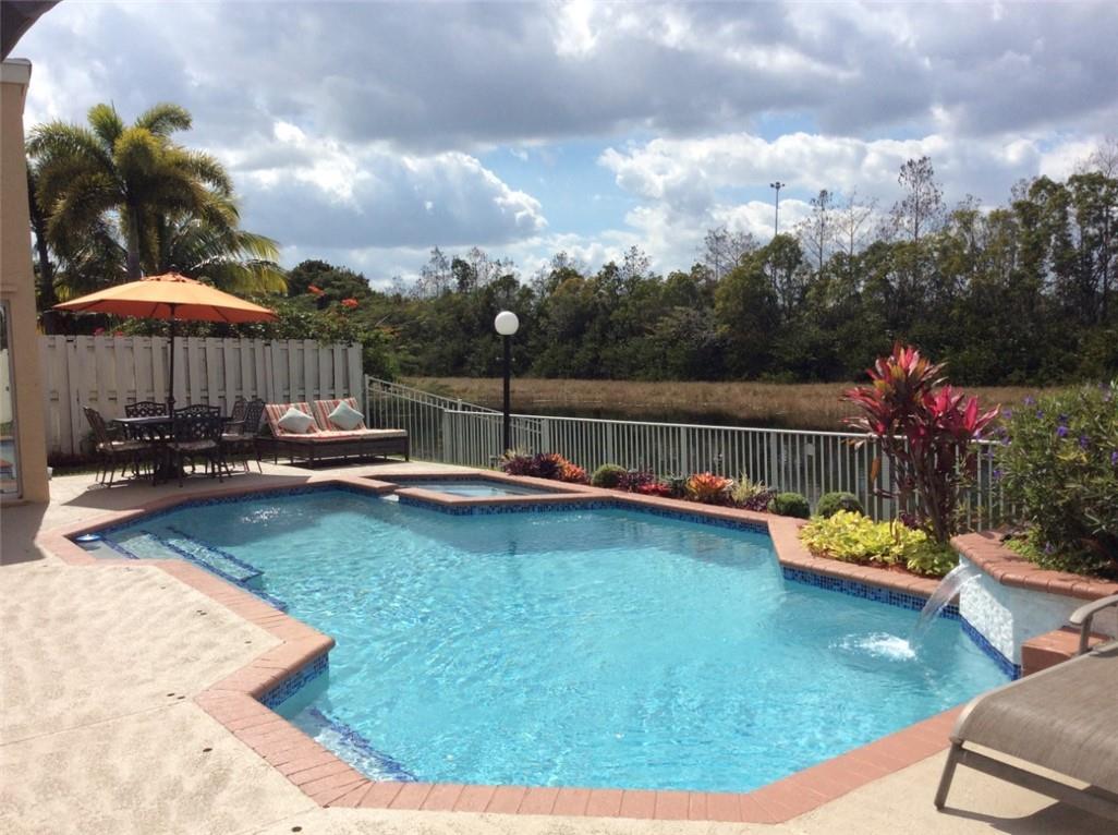 Luxury Living in Spring Valley. Beautifully updated home with European Style Kitchen cabinets, granite countertops, under-mount sink and GE Monogram appliances and wine cooler Marble floors throughout living areas with wood in the bedrooms, with custom closets. Beautiful pool, overlooking serene and private lake and preserve area with no back neighbors. Gated community. Patio Furniture and BBQ can be included. Includes water, pool, pest control, and lawn maintenance.