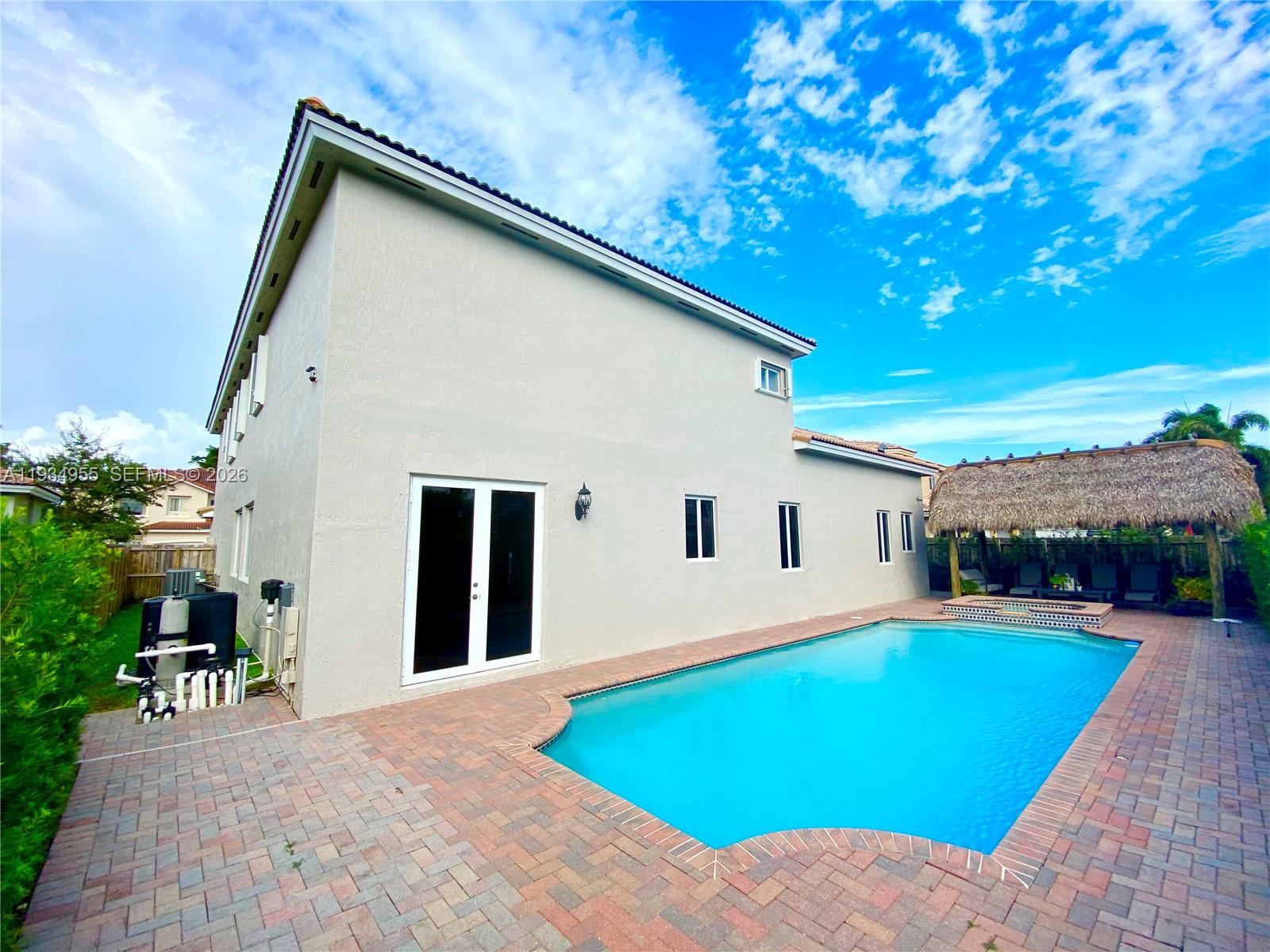 STUNNING AND SPACIOUS 5BR/6BA HOME WITH THREE CAR GARAGE FEATURING A PRIVATE COURTYARD OASIS WITH OVERSIZED POOL, HEATED JACUZZI AND TIKI HUT, PERFECT FOR ENTERTAINING. EXPANSIVE KITCHEN WITH STAINLESS STEEL APPLIANCES, WATER SOFTENER, REVERSE OSMOSIS, AND WATER FILTRATION SYSTEM. LUXORIOUS PRIMARY SUITE WITH PRIVATE BALCONY AND LARGE WALK-IN CLOSETS. IN-LAWS QUARTERS WITH FULL BATH AND SEPARATE ENTRANCE ON FIRST FLOOR. THIS HOME IS DESIGNED FOR COMFORT, PRIVACY, AND RESORT-STYLE LIVING. THE RENT INCLUDES: DIRECTV CABLE, INTERNET, AND ALARM MONITORING. GATED COMMUNITY WITH 24 HOUR ROVING SECURITY, TENNIS, PICKLEBALL AND RACQUETBALL COURTS.