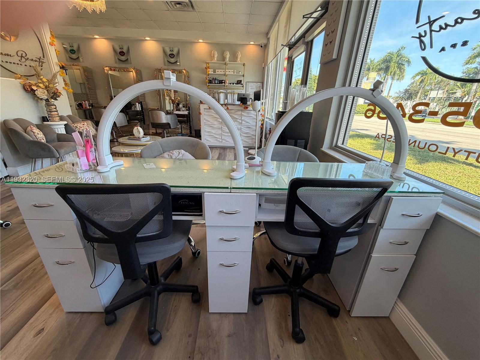 Professional salon space available for rent in a prime North Miami Beach location. This fully equipped salon offers rental options for individual chair/station rentals or leasing of the entire space. Features include 3 hair styling chairs, 4 nail technician stations, and 2 pedicure stations, along with multiple sinks, a washer and dryer and much more. The space is very well-maintained and the layout is highly functional. Ample on-site parking provides convenience for clients and staff. Ideal for beauty professionals or operators seeking a turnkey salon in a high-demand area. Available for immediate occupancy. Showings by appointment only.