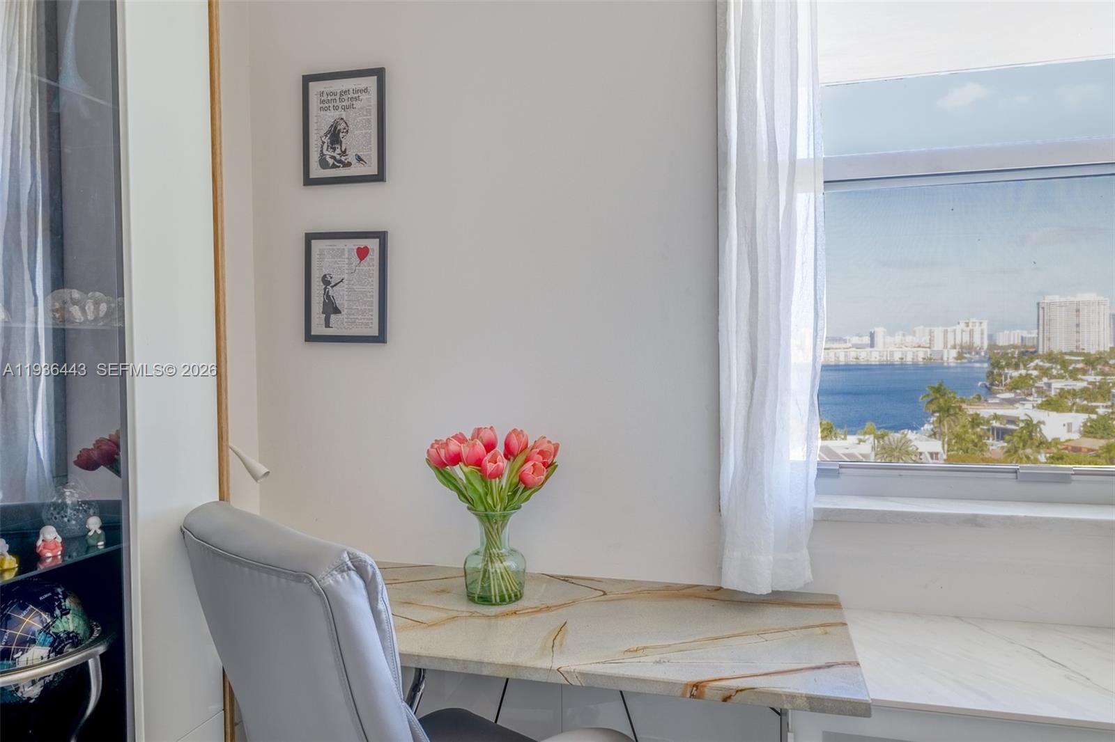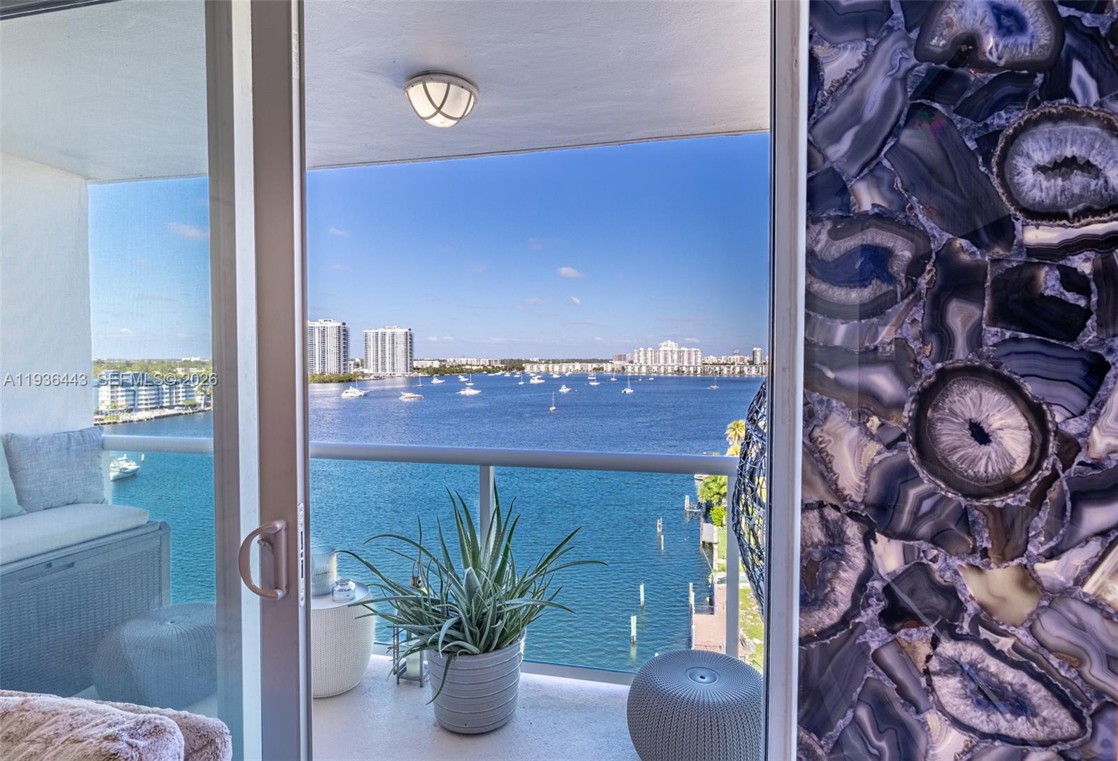 Gorgeous & bright top floor 1/1 condo with breathtaking water and Sunny Isles skyline views from every room, minutes form the beach. This modern fully furnished & equipped home boasts European style cabinets, open kitchen, wine fridge, Samsung appliances, large porcelain floor, quartz and granite counter and vanity tops, plenty of storage space, 2 extra large built in closets, hurricane impact windows and sliding door. Amenities include heated pool, BBQ. Watch dolphins, eagle rays, manatees, and boats pass by. Amazing location minutes to fine dining & shopping, Aventura & Bal Harbour shops, across from Oleta park, 5 minutes to Sunny Isles & Haulover Beach, to IPic theatre, gym, yoga, supermarkets, FIU, Costco. One parking space, washer/dryer in hallway just steps from unit. 1 assigned parking space. Annual lease only. Landlord requires good credit and income, background check. Available starting Feb 1st, 2026