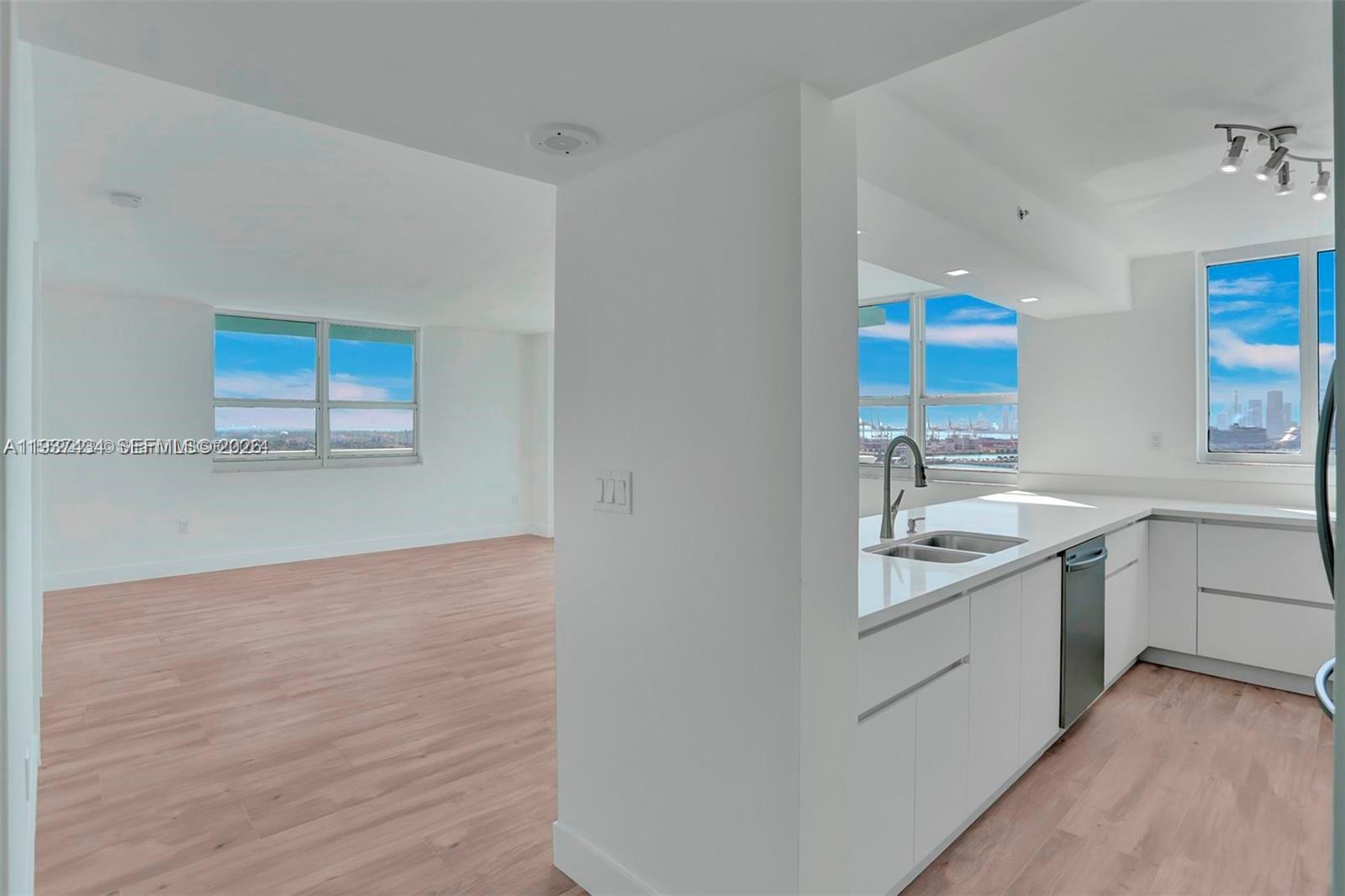 Best line of the building. Enjoy breathtaking views of Biscayne Bay, Star/Palm Island and Miami downtown skyline. This is a fully remodeled 2/2 unit with wrap around balcony, beautiful ceramic tiles throughout, quartz kitchen counter tops, stainless steel appliances, soft close drawers and cabinetry, fully renovated bathrooms. Resort style amenities with 2 pools, tennis & basketball courts, gym, sauna, spa, BBQ area, convenience store and available boat dock. Located on the bay across from the new 3-acre public park, walking distance to trendy restaurants, cafe, supermarket and just a short stroll to the beach.