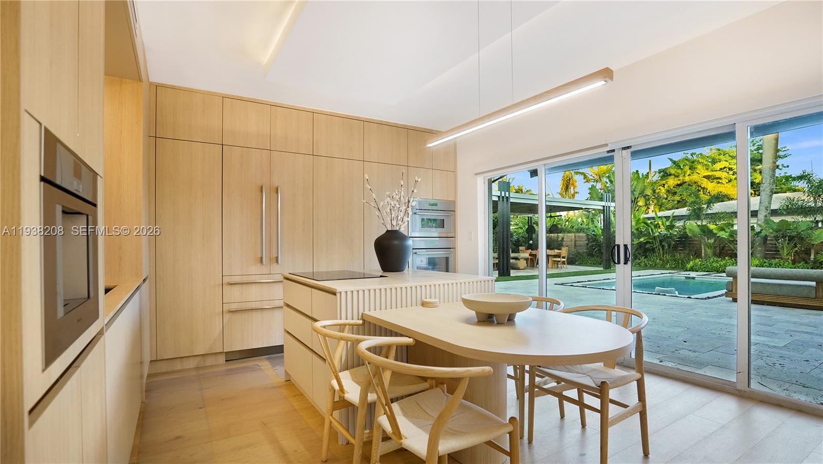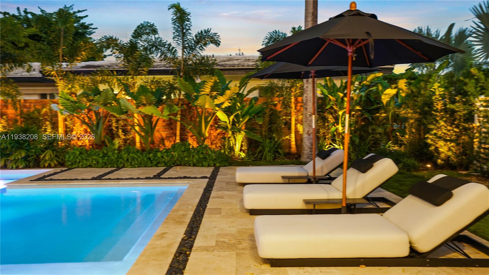 Discover this beautifully renovated 4+ bedroom 4 bathroom single-family house, thoughtfully designed with serene Japandi-style touches that create a peaceful and meditative atmosphere throughout. The spacious layout includes a versatile den perfect for a home office, playroom, or flex space, along with a luxurious master suite boasting massive his-and-hers closets for ample storage and ensuite bathroom with his-and-hers showers. For added convenience and privacy, the property features a detached, fully equipped 1-bedroom accessory dwelling unit complete with its own kitchen and washer-dryer, in addition kitchen and washer-dryer set in the main house to support multi-generational living or effortless entertaining. The gourmet kitchen is outfitted with the latest appliances, including a built-in fridge, coffee maker, oven, dishwasher, and more, complemented by a full bar area with a wine fridge for seamless hosting. Step outside to a true backyard sanctuary oasis, where a huge heated pool, covered area with an outdoor grill, vegetable garden, and abundant entertainment options transform the space into a paradise for relaxation and gatherings. The house is located in Davis Harbour neighborhood, steps from water to enjoy the views, morning/ afternoon walks and refreshing Biscayne Bay breeze.