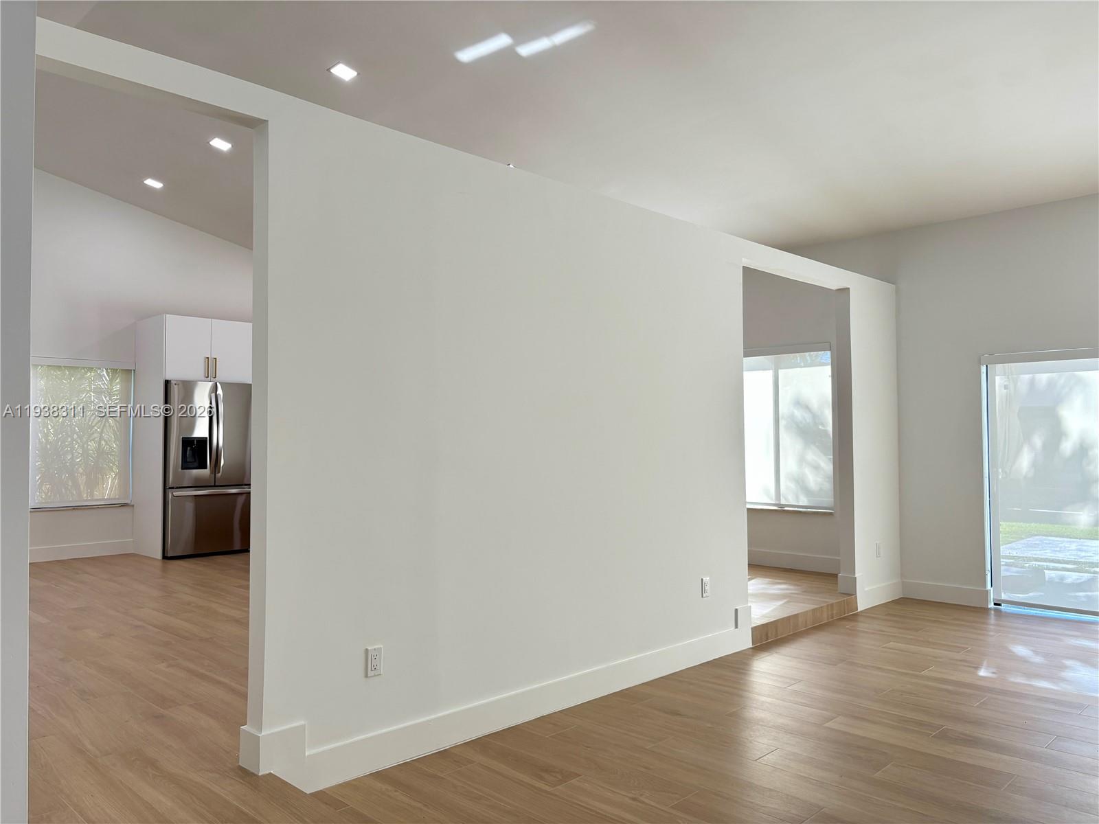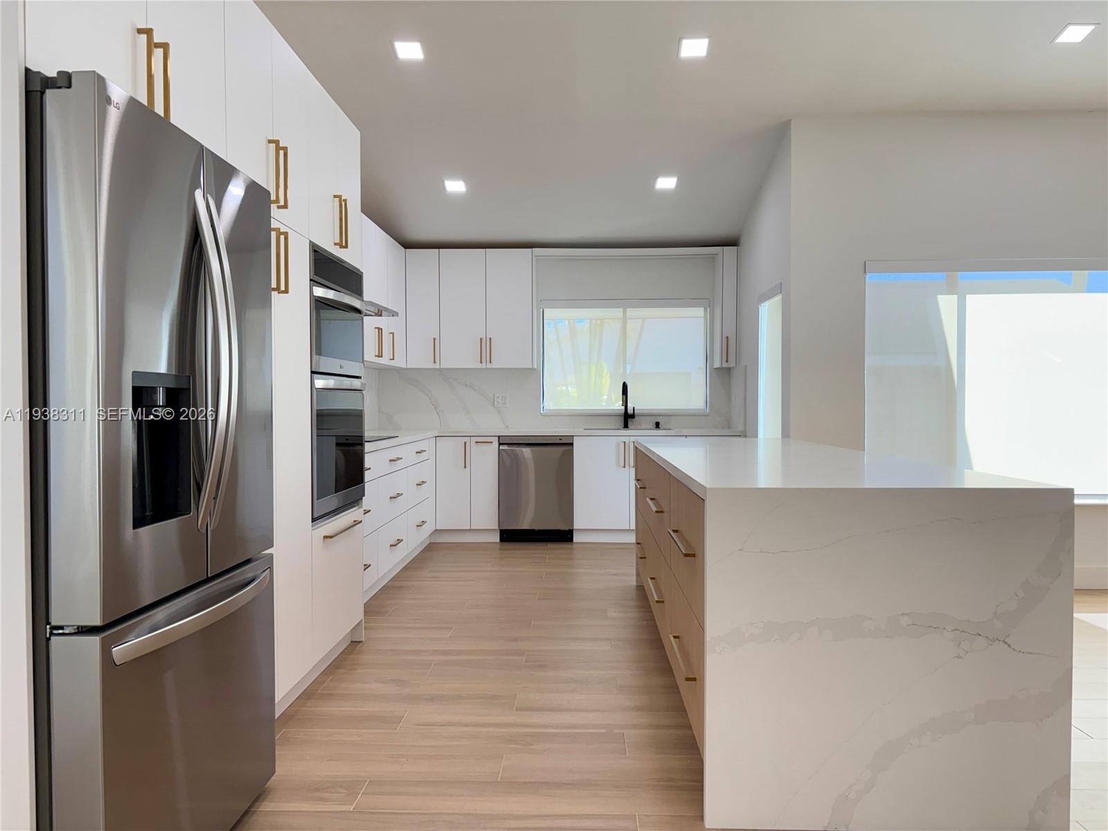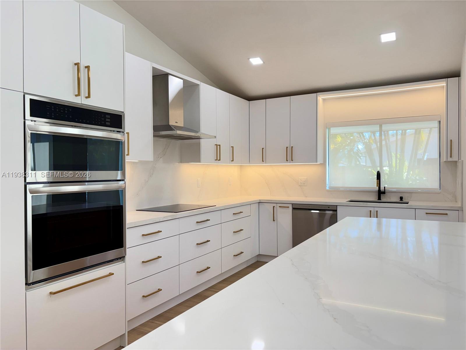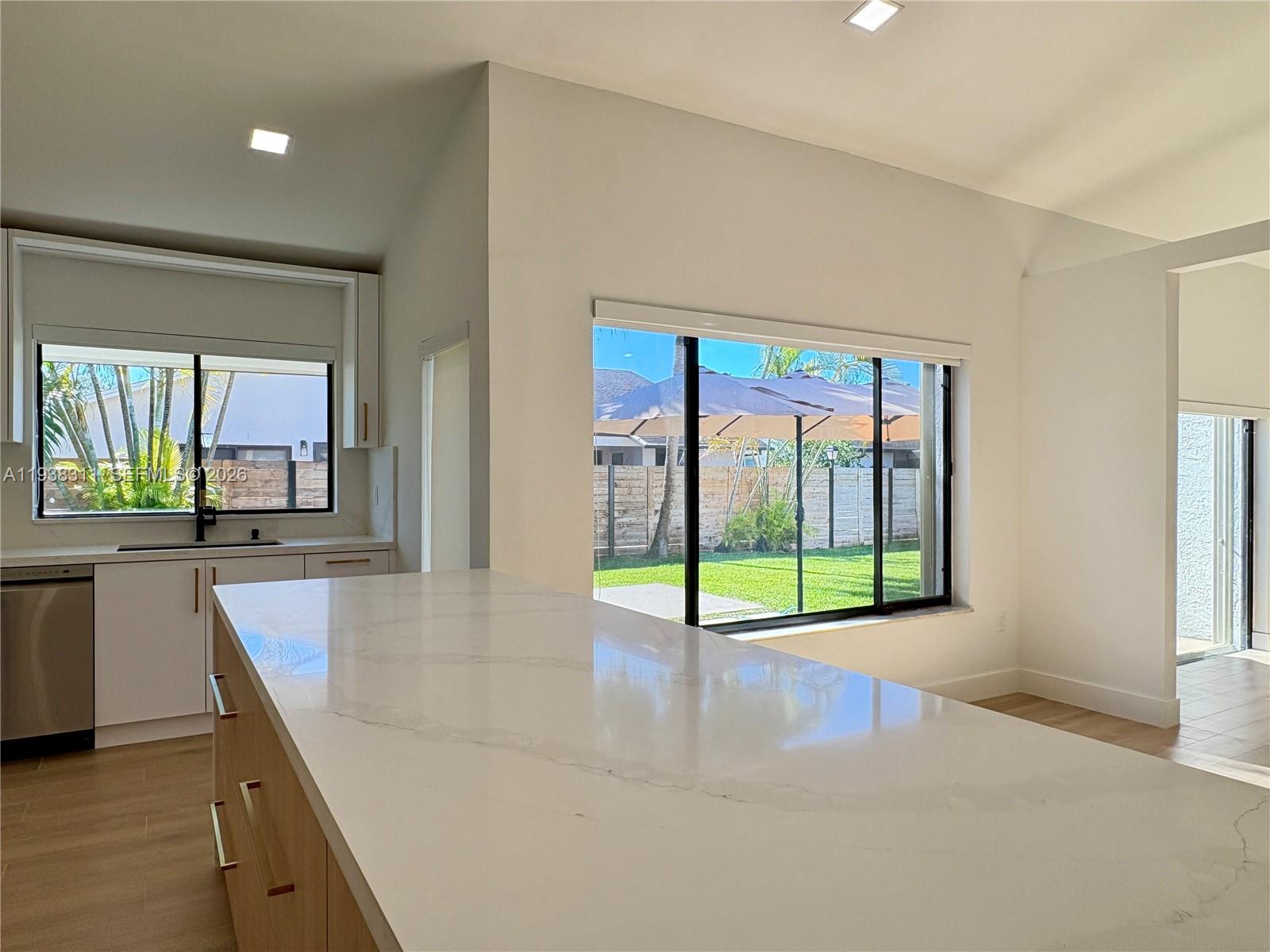 Absolutely GORGEOUS house in the Calusa area! This 4 bedroom | 2 bathroom home is totally updated with high volume ceilings, a stunning kitchen with quartz countertops and brand new stainless steel finished appliances. Under-cabinet lighting creates an extra touch of elegance! This home features an OPEN CONCEPT, but with a partial wall that still provides separation between the Large Living / Dining Room area, and the huge Family Room that is adjacent to the kitchen. The long and wide kitchen peninsula provides plenty of counter space to tie the Kitchen and Family Room together. You will also love the casually elegant wood look porcelain tiles that create unity throughout the home, especially as you enter the bedroom area of the home. Four large bedrooms and beautifully remodeled modern bathrooms will provide privacy and comfort for the whole family. The front and back yards are welcoming and offer a great space for the family to enjoy. The two-car garage has a separate mini-split air-conditioner which may come in handy if you use part of the garage as a workout space. You must come and see this special gem of a home! Make an appointment soon!!!