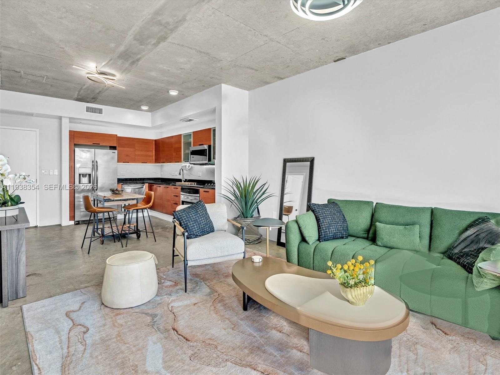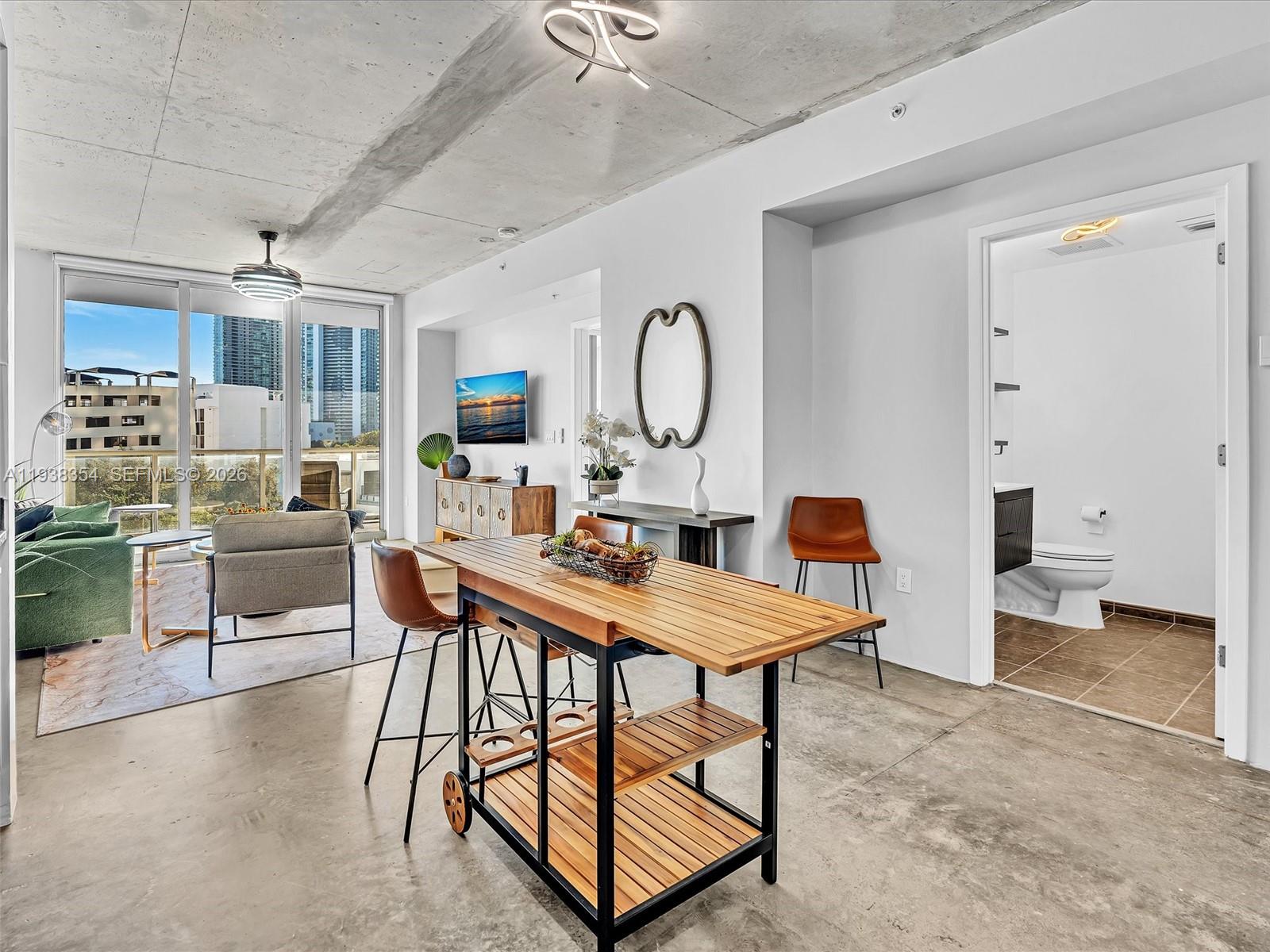 New and modernly furnished residence completely renovated in 2025 offering urban city living at 2 Midtown Miami. Unit 504 features an open-concept layout with floor-to-ceiling windows providing abundant natural light and dynamic Midtown views. Contemporary kitchen with sleek cabinetry, stainless steel appliances, and ample counter space ideal for entertaining. Spacious bedroom with generous closet space and modern ensuite plus half bath with clean, refined finishes. In-unit washer/dryer and private balcony complete the residence. Full-service building with 24-hour security, concierge, resort-style pool, fitness center, and self parking. Prime Midtown location minutes from dining, shopping, and to Wynwood, Design District, Miami Beaches & 20 minutes to Miami International, welcome home to 2 MIDTOWN!