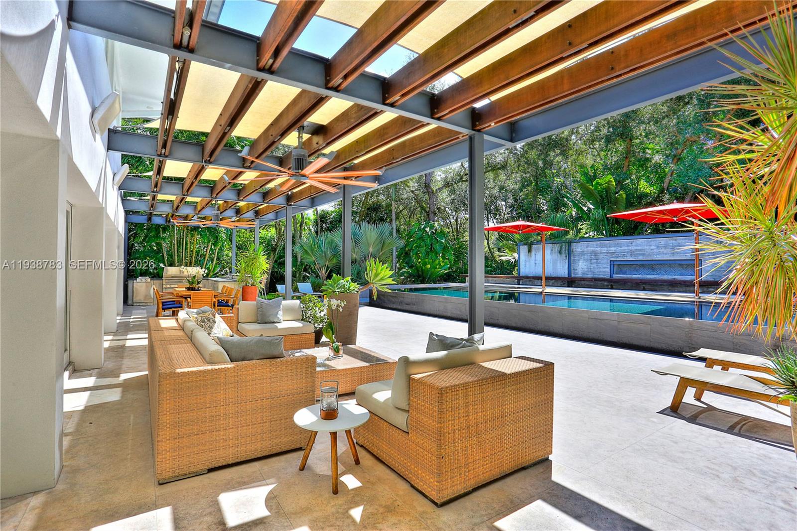 Stunningly updated from top to bottom w/ the finest finishes & details like white oak wood floors throughout, 1100 bottle wine cellar, Sonos sound system, Lutron lighting & power shades, outdoor living room including infinity edge pool with child pool fence, feature wall, summer kitchen w/ poured concrete counters, fireplace & cantilevered TUUCI umbrellas. Open living spaces w/ mahogany impact doors, gorgeous exposed beamed ceiling, gourmet kitchen w/ butler’s pantry, 3 BR’s down + game room, private 2nd floor primary suite w/ beautiful double door entry offers gracious BR, sitting room, stunning bath & 2 walk in closets. Laundry room, 2 car gar, ½ basketball court, walled and gated 36,153 SF lot in the gated Banyan Lakes neighborhood.