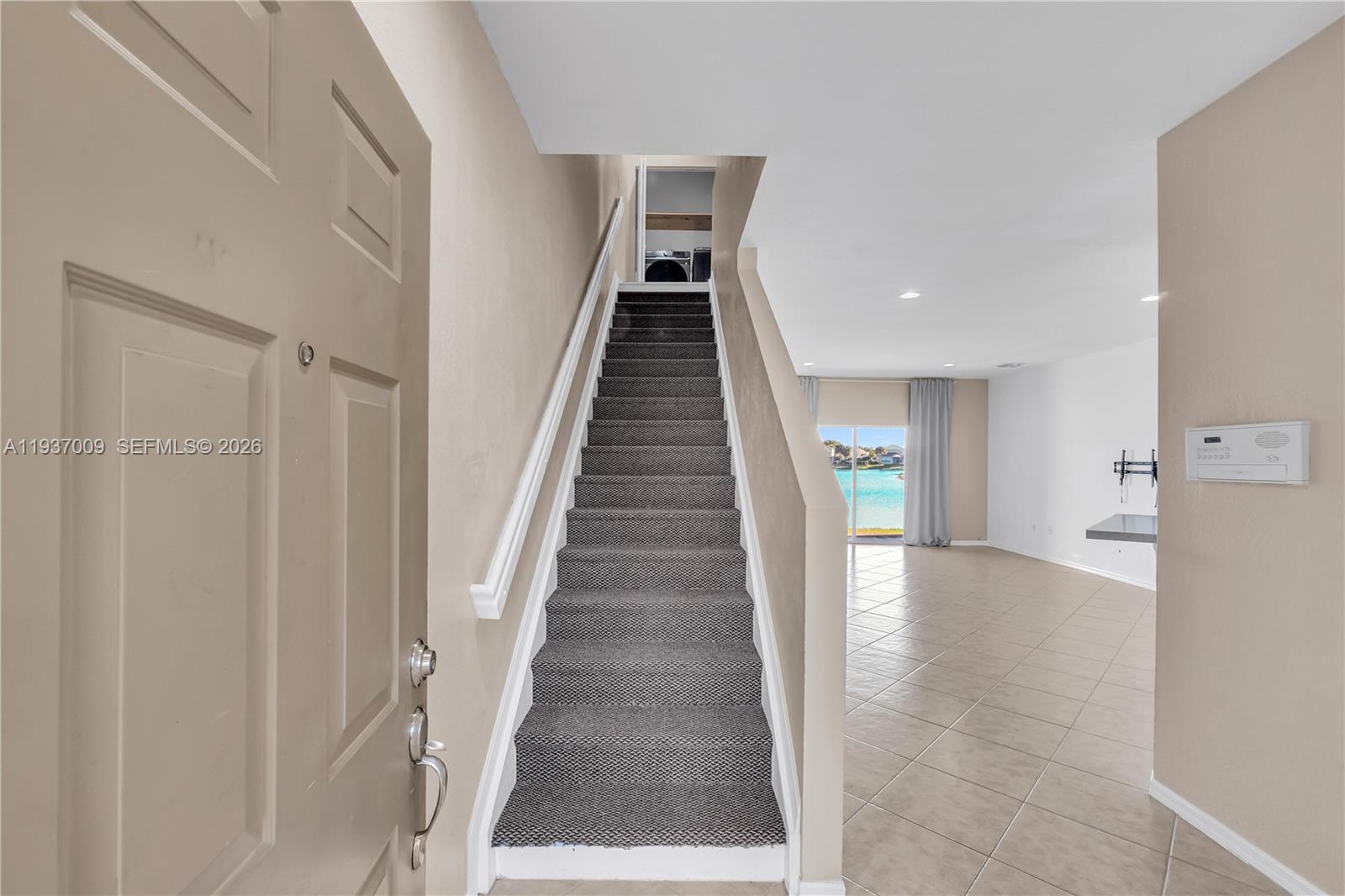 Welcome to this beautifully bright 3 bed + den, 2.5 bath waterfront condo located in Banyan Bay of the Silver Falls community. Fall in love with the spectacular lake view the moment you step into the property. Entertain with ease with the eat-in kitchen, dedicated dining area, and large, open living area. Upstairs has a split floor plan with all 3 bedrooms, a den, and a laundry area. Wake up to tranquil water views from the primary bedroom, which hosts a large walk-in closet and an even larger bathroom with dual vanity sinks. This unit boasts a serene covered patio overlooking the water. 4 parking spaces total: 3 driveway + garage). Accordion shutters throughout. Water and basic cable are included. Spacious under-staircase storage room. Enjoy an array of community amenities: pool, tennis and basketball courts, playground, and more! Conveniently located near shopping, dining, and the Turnpike! Minimum FICO score of 620 for all applicants. Rare opportunity! Only asking 2 months up front!