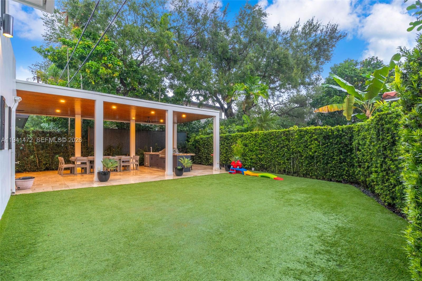 Situated on a picturesque, quiet oak tree-lined street in the highly sought-after South Gables neighborhood, this elegant 4-bedroom, 3-bathroom residence offers a spacious and thoughtfully designed layout ideal for comfortable family living. the home features beautiful marble flooring throughout the main living areas, complemented by warm wood flooring in the bedrooms. The modern, chef-inspired kitchen is equipped with premium Wolf and Sub-Zero appliances, stunning quartzite countertops, and an impressive waterfall island-perfect for everyday dining, entertaining, and gathering with guests. Set on a 6,473 sq. ft. lot the property boasts a generously sized, intentionally designed outdoor terrace complete with a built-in BBQ beverage refrigerator, storage, cabinets, ad a large eat-in counter - ideal for hosting and enjoying Miami's indoor-outdoor lifestyle, day or night. Lush professional landscaped grounds provide exceptional privacy while remaining easy to maintain. Additional highlights include a large driveway offering ample parking. Conveniently located just minutes from the University of Miami, the hoe is also close to Miami's top-rated schools, as well as the renowned dining, shopping, and entertainment destinations of Merrick Park, Miracle Mile, Coconut Grove, and Sunset Drive.