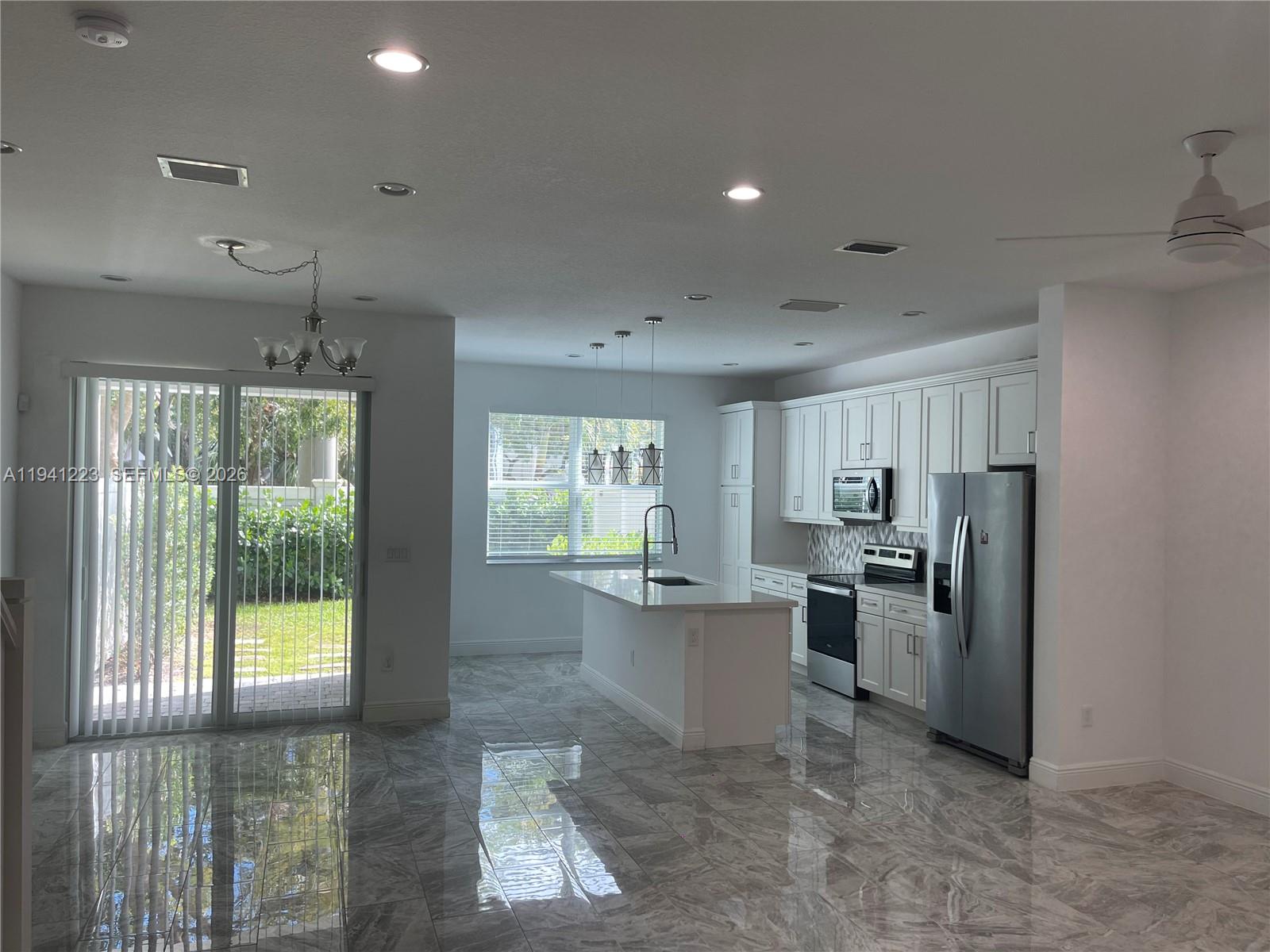 Well-maintained townhouse in the desirable Sandpiper Pointe Community. Features an open floor plan with natural light, neutral colors, and modern finishes. Kitchen offers white cabinets, quartz countertops, stainless steel appliances, and center island. Tile flooring on first floor. Upstairs includes spacious bedrooms and a primary suite with double vanity and walk-in shower. Private fenced backyard with patio. One-car garage and driveway parking. Washer and dryer included. Convenient location near shopping, dining, and major roads. Available for immediate move-in.