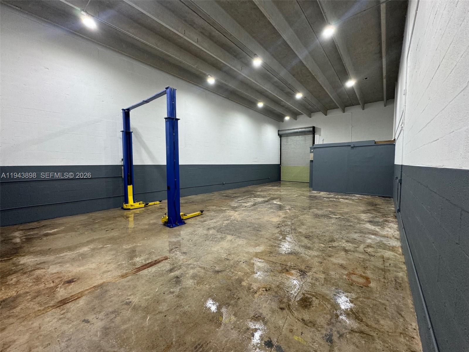 Maribel Warehouses is a secure, gated warehouse condominium offering functionality and convenience. This unit features 1,438 SF of street-level warehouse space with a roll-up bay door and three assigned parking spaces, including one directly at the bay door. The property includes a beautifully renovated, built-out office and bathroom under air conditioning, while the warehouse area has been freshly painted and boasts high ceilings for added versatility. Centrally located with easy access to Palmetto Expressway (826) and close to Doral and Hialeah. This location is ideal for a variety of business uses. Car lift shown in pictures is not included in the rental and will be removed prior to occupancy. Easy to show — call listing agent.