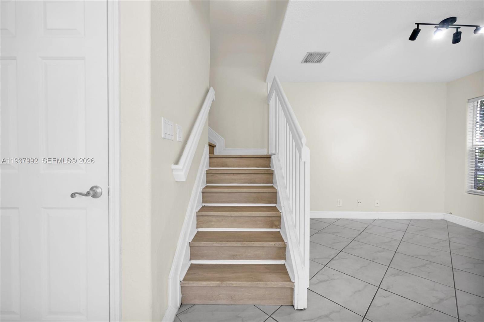 Beautiful and spacious corner townhouse with impact windows, 1 car garage, 3 bedrooms 2 1/2 bathrooms and large patio.