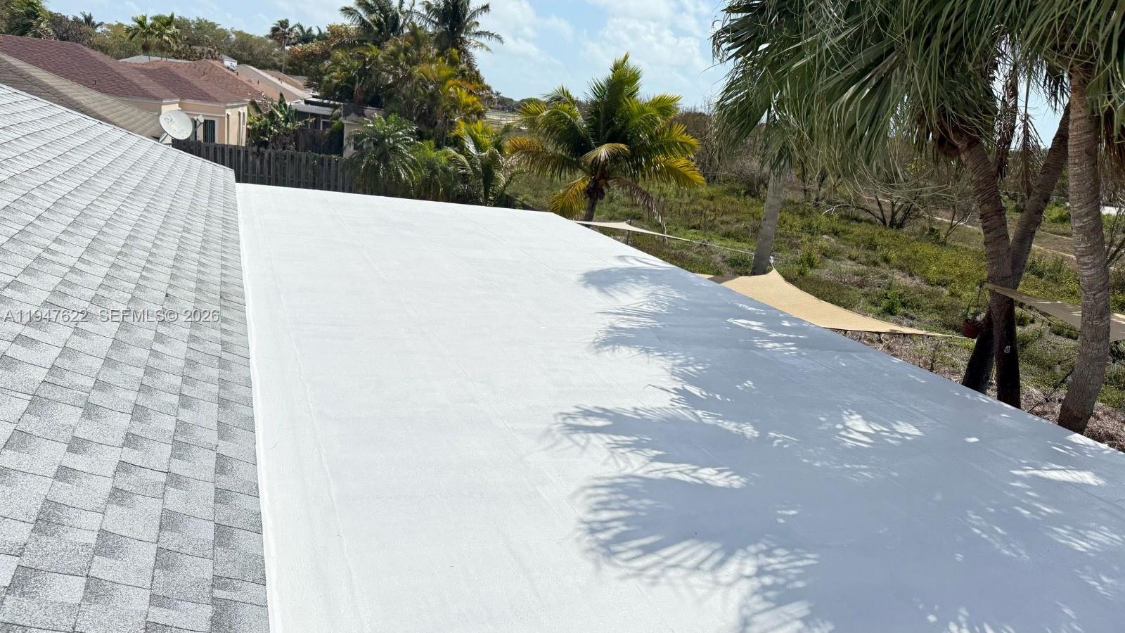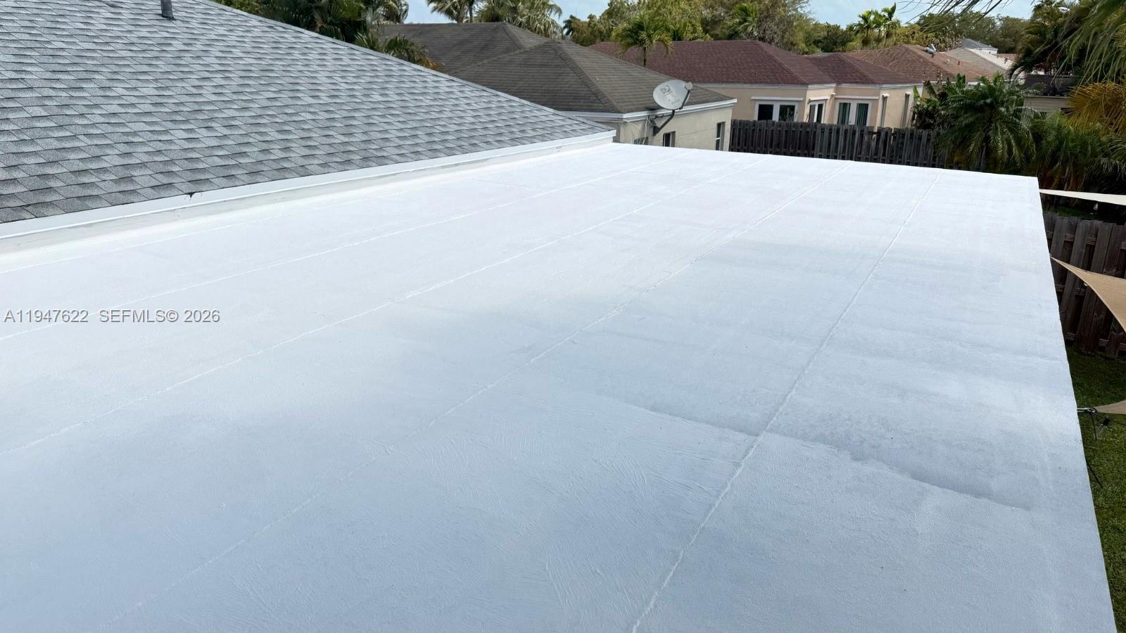 Huge backyard covered terrace. Enjoy your fenced yard year round. No neighbors to the back of the property, for extra privacy. Lovely townhome with 2 driveway parking spaces in Lakes by the Bay. 3 Bedrooms, 2 bathrooms, and full sized washer/dryer. Community pool for hot summer days. Close to community shopping and highways. See aerial shots of impeccably maintained roof.
