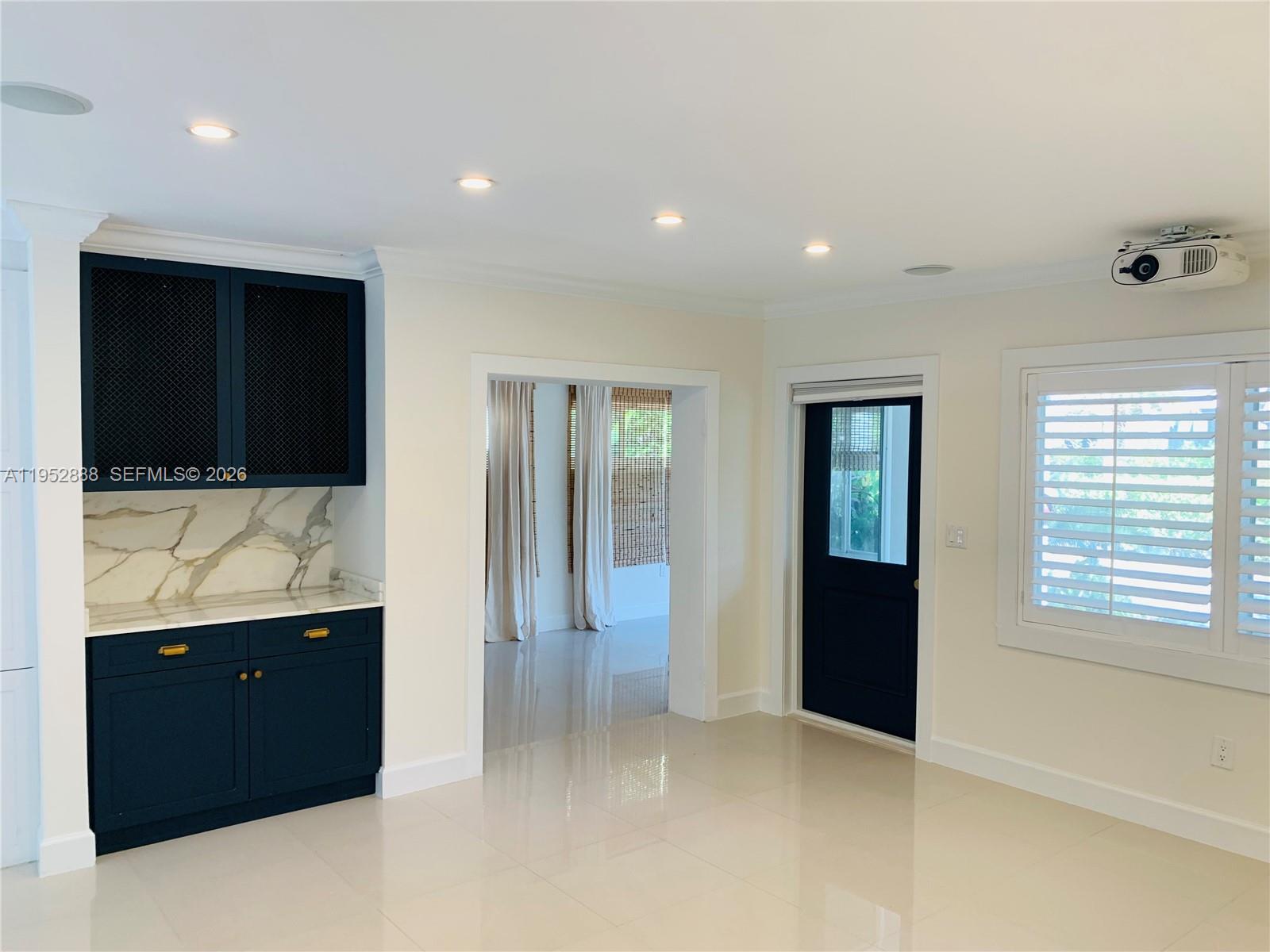 Beautifully redone Cottage on a lush & quiet tree lined South Grove street, 40' from Merri Christmas Park. 1,480 sf. encompassing 3 bedrooms & 2 baths & a large family room. Impact Resistant windows & Doors, new roof, kitchen and baths. The property was exquisitely remodeled in light tone in Cream colored porcelain tiles, Carrera marble. Drop down projection screen/projector in living area. Beautifully appointed large eat in kitchen which opens up to a covered terrace and yard. Master bath focusing on a strong attention to detail, all resting on corner lot. 24 hour notice to show. Not for sale!