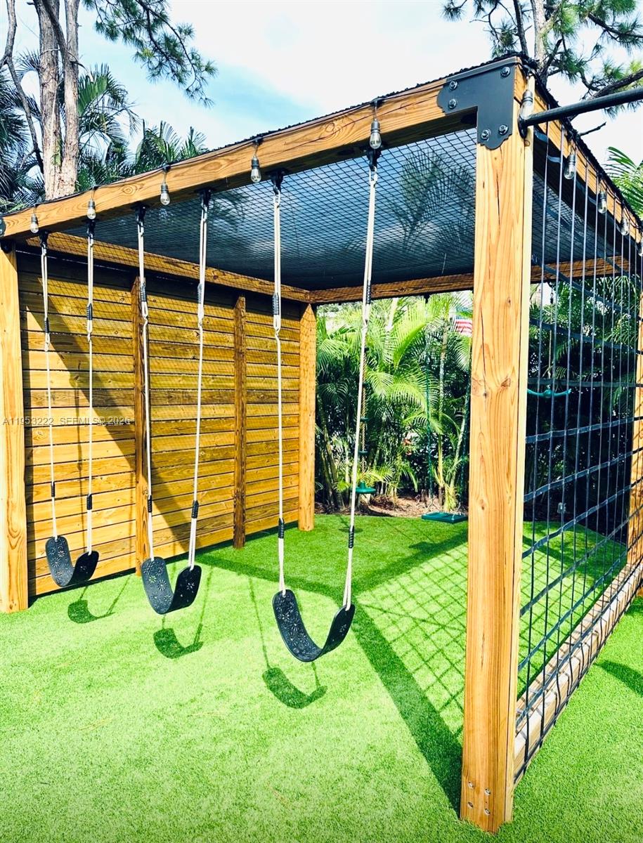 Beautifully remodeled 5 bedroom, 3 bathroom turn key ready exquisite home! Stunning panoramic views of the private heated salt water pool & waterfall jacuzzi from the foyer and living room/dinning room! This home also features a versatile office room/game overlooking the pool, chef's kitchen, high vaulted ceilings, custom fireplace, hurricane impact windows & doors, and spacious fenced in backyard with newly furnished patio & custom kids playground area! Lush backyard with plenty of space for entertaining and everyday living! Nestled on a 16,135 sq ft lot in a peaceful cul-de-sac in the heart of Boca Raton! Family & pet friendly, and nearby grade A+ schools, beaches, restaurants, shopping, hospitals, and so much more! Come see your new luxurious dream home!