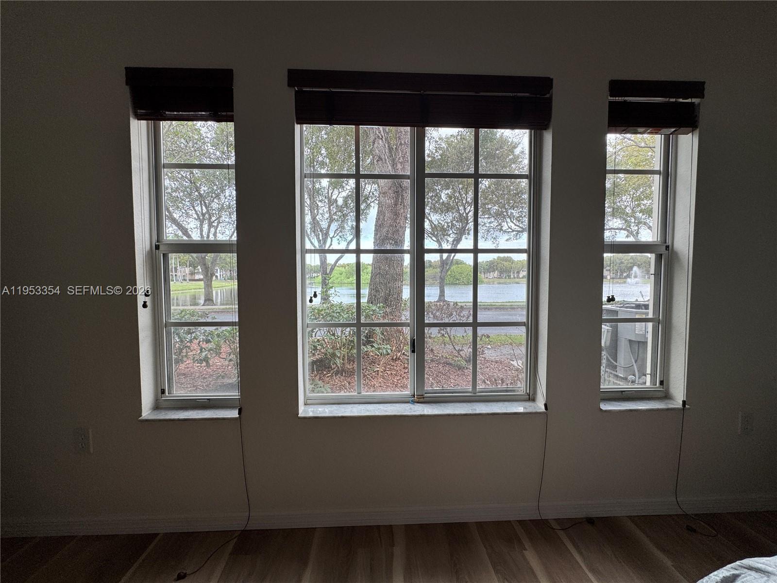 LAKEFRONT CORNER CONDO WITH GARAGE IN AVENTINE! Enjoy this bright and spacious 2-bedroom, 2-bathroom ground-floor residence featuring spectacular, unobstructed lake views and abundant natural light. Its premier corner location and multiple windows create an open, airy atmosphere while providing extra privacy and a serene connection to the surrounding landscape. The primary bedroom boasts direct water views, while the open living and dining areas also overlook the lake, creating a tranquil environment for everyday living. The kitchen is equipped with durable granite countertops and functional cabinetry with plenty of storage space. A standout feature of this home is the private attached one-car garage with direct interior access, providing convenience and added security. Recent upgrades include a BRAND NEW large-capacity washer, paired with a functional dryer in good working condition. Being a first-floor unit, it offers easy access and a seamless flow between the indoor space and the lush outdoor surroundings. Residents of the desirable Aventine community enjoy excellent amenities, including tennis courts, two swimming pools, jacuzzi areas, a fitness center, and scenic walking and biking paths, all within well-maintained grounds. This is an ideal opportunity for those seeking comfortable lakefront living in a prime Miramar/Pembroke Pines location. Modern convenience meets a peaceful setting. Schedule your private showing today!