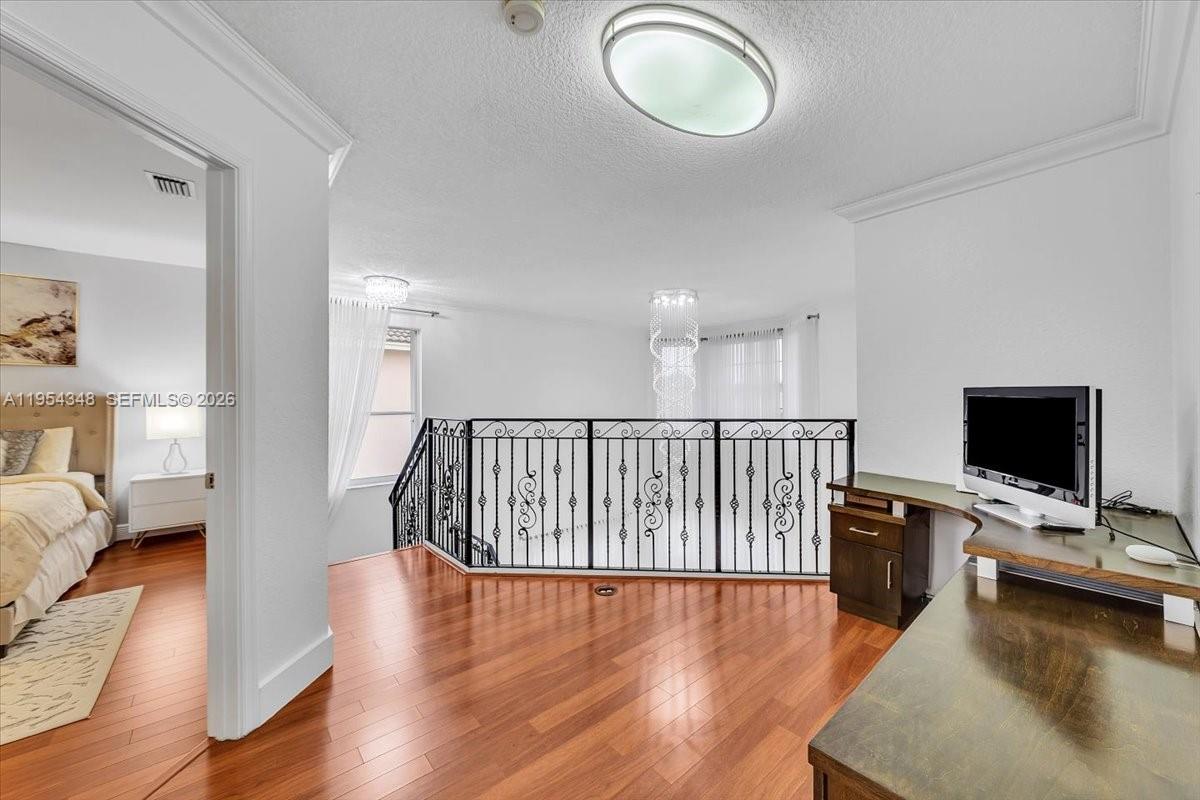 This beautifully maintained 4-bedroom, 2.5-bath home is located in a desirable Pembroke Pines neighborhood, just minutes from Pembroke Lakes Mall, CB Smith Park, and top-rated schools. The first floor features tile flooring throughout, while the second floor boasts warm wood floors, creating a perfect balance of style and comfort. The open kitchen offers granite countertops, ideal for meal prep and entertaining. Enjoy high ceilings and neutral wall and ceiling colors that enhance the bright, airy feel throughout the home. The master bathroom features expansive mirrors, adding a touch of luxury. Additional highlights include hurricane shutters, smoke alarms, and thoughtful outdoor amenities such as a BBQ area, outdoor bathroom, and a sparkling swimming pool. Situated in a meticulously maintained community, this home provides both comfort and convenience while being close to dining, shopping, parks, and major highways, making it perfect for tenants seeking both style and practicality.