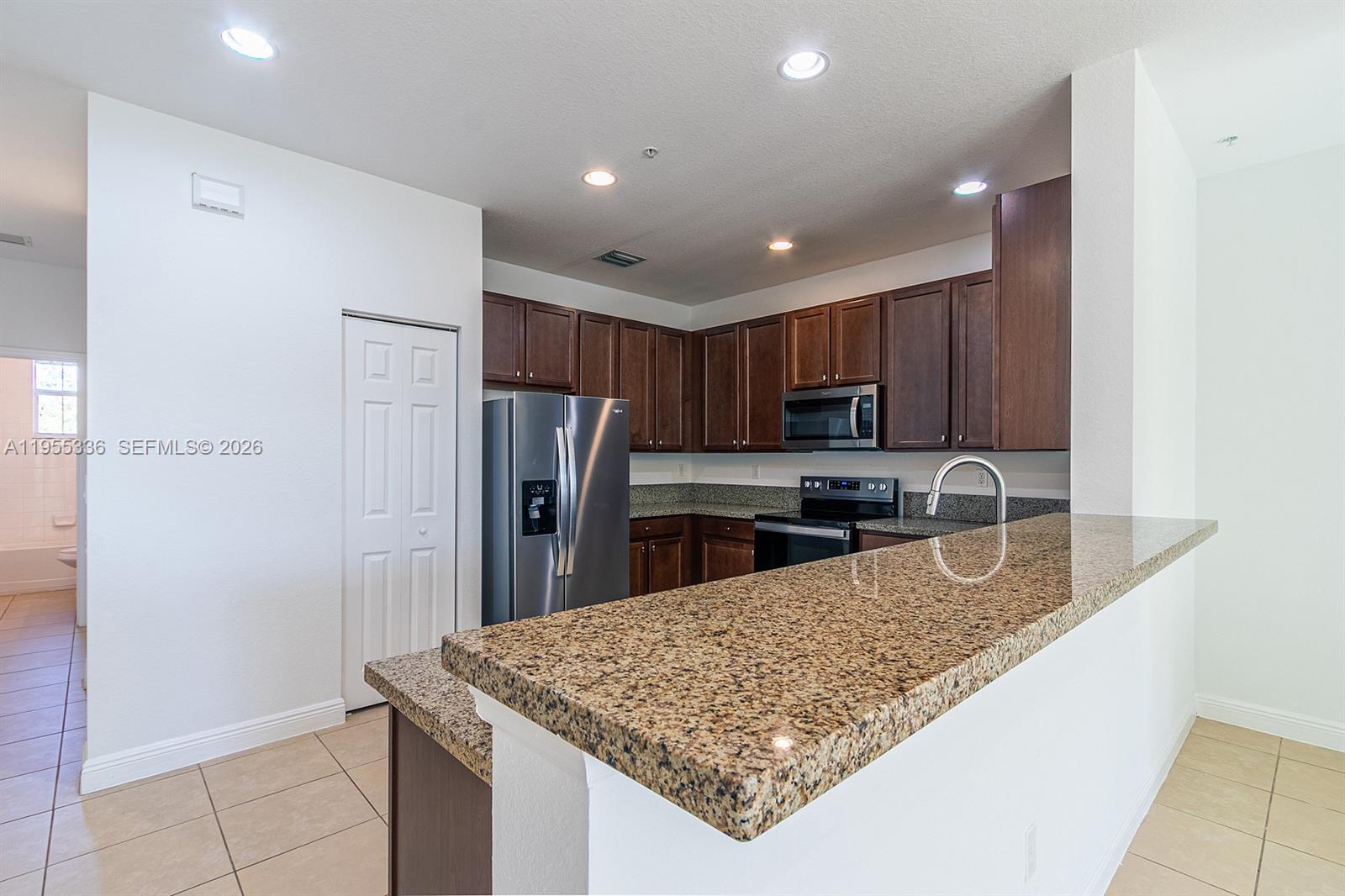 Absolutely breathtaking 3BR/3BA tri-level town home in the incredible private community of Cobblestone! This gorgeous residence features 3 levels, tile flooring throughout, and is in impeccable condition. Freshly painted with new flooring on the stairs and ready for immediate occupancy. The second level features an open layout with volume ceilings. Oversized modern kitchen with stainless steel appliances, granite counters, wood shaker cabinets, recessed lighting and a storage closet. Guest bedroom with ample closet space and separate bathroom with wood vanity, granite counters and combo bathtub/shower. The third level is home to two independent master suites. The primary bedroom has an open balcony and His/Hers closets. Beautiful primary bathroom with dual sinks, wood vanity, granite counters and a glass encased shower. The second master suite has a walk-in closet and its own bathroom with wood vanity, granite counters and combo bathtub/shower. Washer/Dryer is conveniently located on the third floor in between the two master suites. Cobblestone is one of Pembroke Pine's most sought after communities. It offers its residents a beautiful resort-style pool, fitness center, playgrounds, kids’ play room, and a club space available for parties or events. Gated and secured entrance. Excellent location near A+ Schools and within walking distance to Whole Foods, restaurants, and the Shops at Cobblestone Plaza. Just a 3 minute drive to I-75. Small pets Okay with a pet deposit.