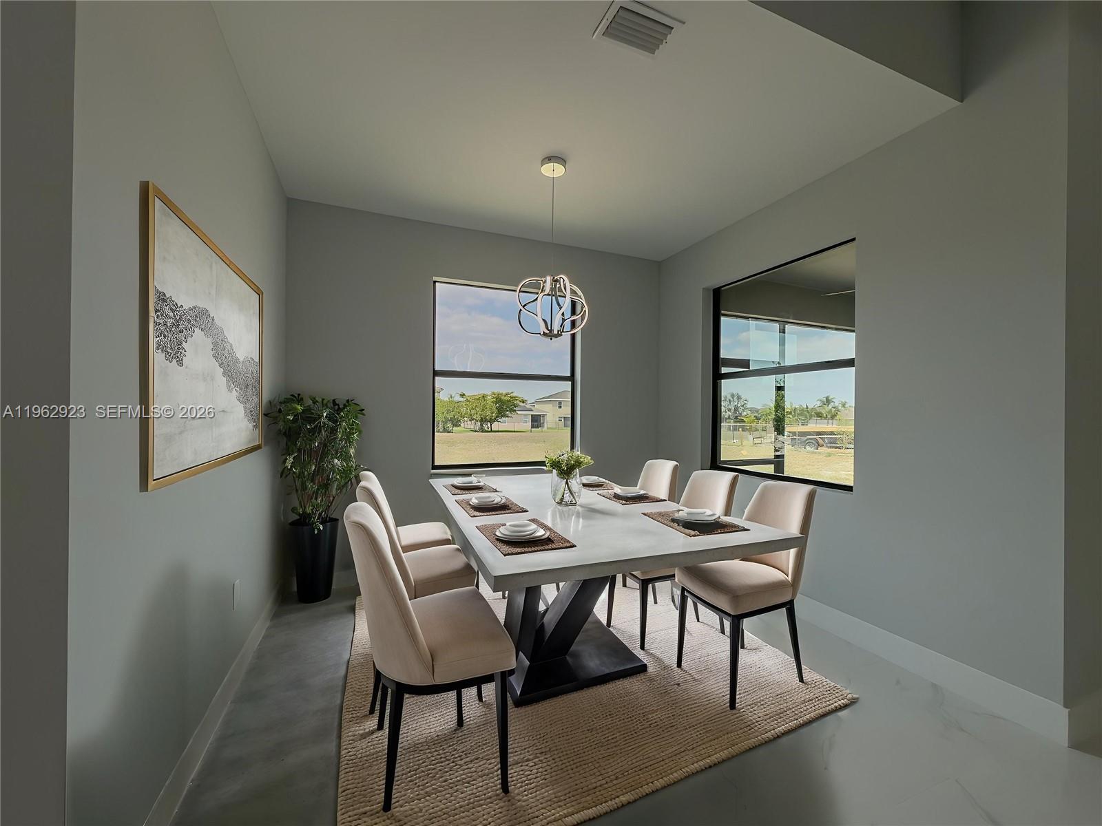 Welcome to this beautifully designed brand-new construction in prime Lehigh Acres. This 3-bedroom + den home offers 1,717 sqft of living space on an oversized lot, blending comfort and modern style. The open-concept kitchen features stainless steel appliances, flowing into spacious living areas with elegant porcelain floors. The master suite includes two walk-in closets, a luxurious bathroom with dual showers, and a bathtub. Two additional bedrooms and a den offer privacy and flexibility. A metal roof adds durability and style. Enjoy a 2-car garage and a screened lanai with a full outdoor kitchen perfect for entertaining. A key highlight is the canal-front backyard, offering privacy and Space. Disclosure: Some photos have been virtually staged to illustrate potential.