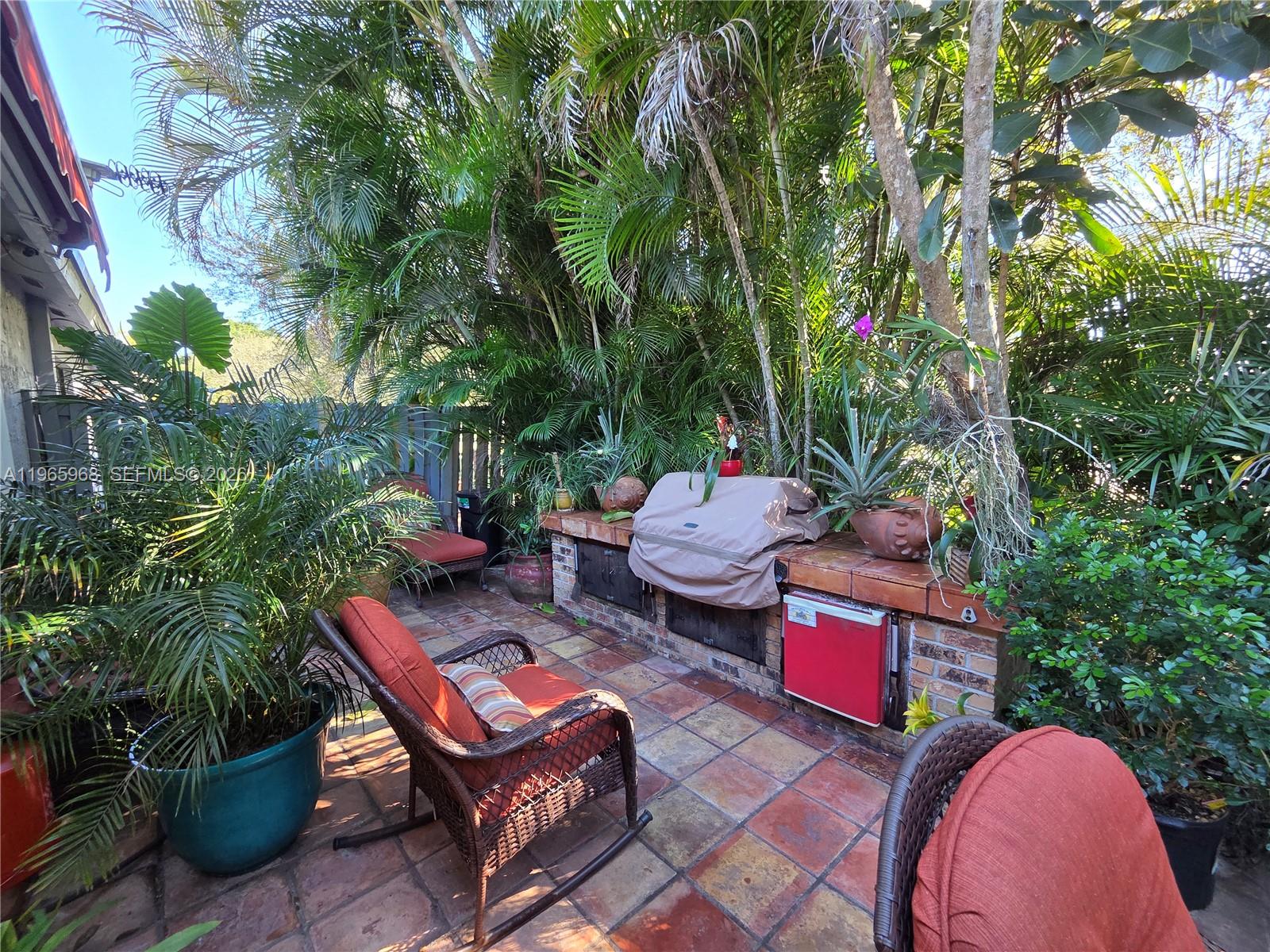 Welcome to Redbridge! This beautifully maintained 2BR/2BA single-story townhome sits on the golf course and features granite kitchen counters, updated baths, impact windows/shutters, wall-to-wall closets, and a new Samsung Hub fridge and 2025 hot water heater. Extras include: fenced patio with built-in outdoor kitchen & Jenn-Air BBQ, new awning, and ample parking. Community pool, top-rated schools. 3 cars parking assigned. Fresh paint in living room/dinning room