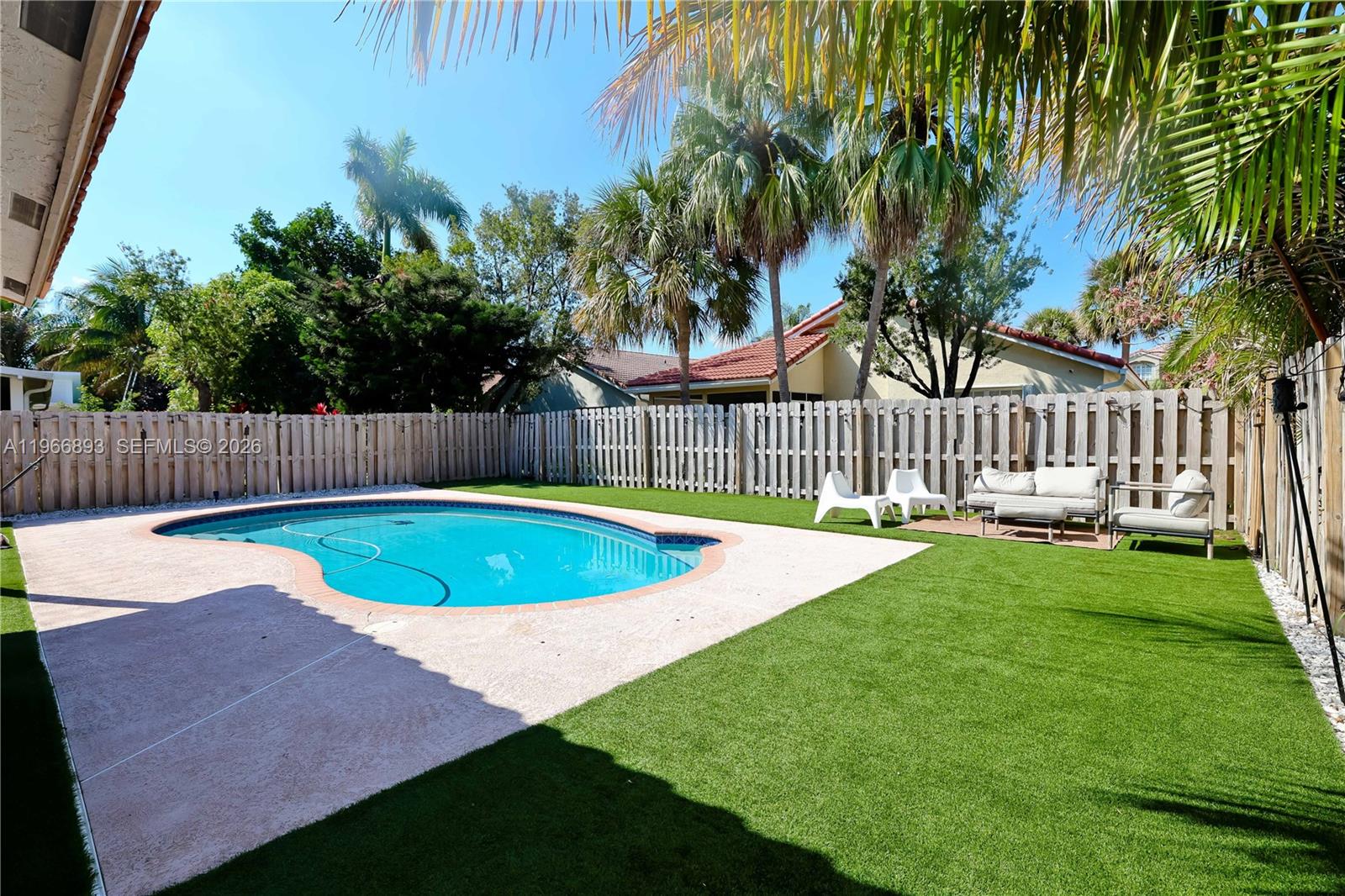 Stunning single-family, This 4-bedroom, 2.5-bathroom home features a spacious master bedroom perfect for a king-size bed and even a home office setup. The property boasts a private backyard with a beautiful pool and terrace, ideal for entertaining or relaxing in the Florida sun. The home will be professionally painted and ready for move-in. The open floor plan provides plenty of natural light and a smooth flow from the living area to the kitchen and dining space. Additional features include ample closet space, modern appliances, and a 2-car garage. Conveniently located near schools, shopping, and major roads.