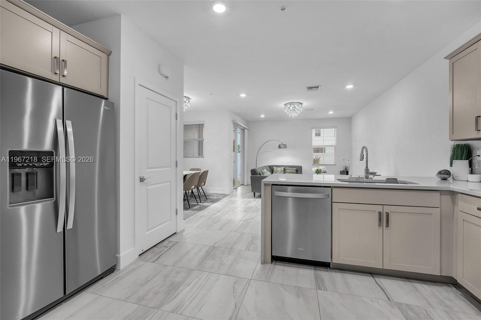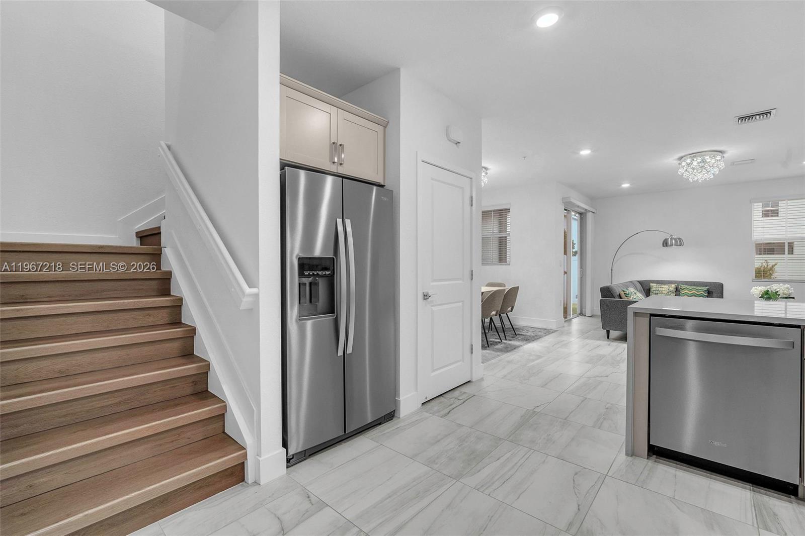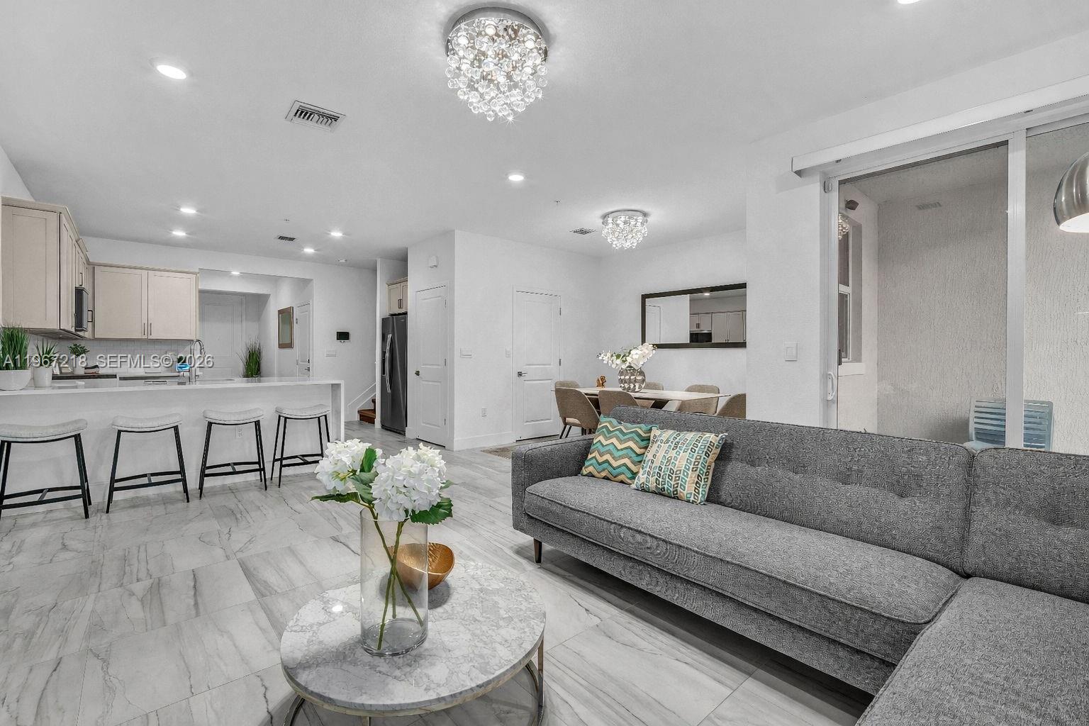 Stunning brand new 3 bedrooms 2 baths residence, features Italian marble-style porcelain flooring on the first floor and wood flooring throughout the second level. The main floor offers a welcoming foyer. A spacious living area overlooking the patio, a dining area, a modern open-concept kitchen, half bath, and a large storage room. Upstairs, you'll find all bedrooms with wood flooring, spacious primary suite with dual sinks, glass-enclosed shower, dedicated workspace, washer and dryer room. Enjoy a private backyard perfect for BBQs. This house is equipped with high-impact windows throughout and windows shades. residences have access to a beautiful clubhouse featuring a gym, multipurpose room, and children's playground. Ideally located in a prime area with A+ schools. Close to all. Easy to show, call me.
