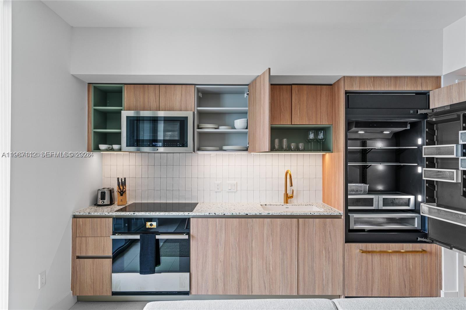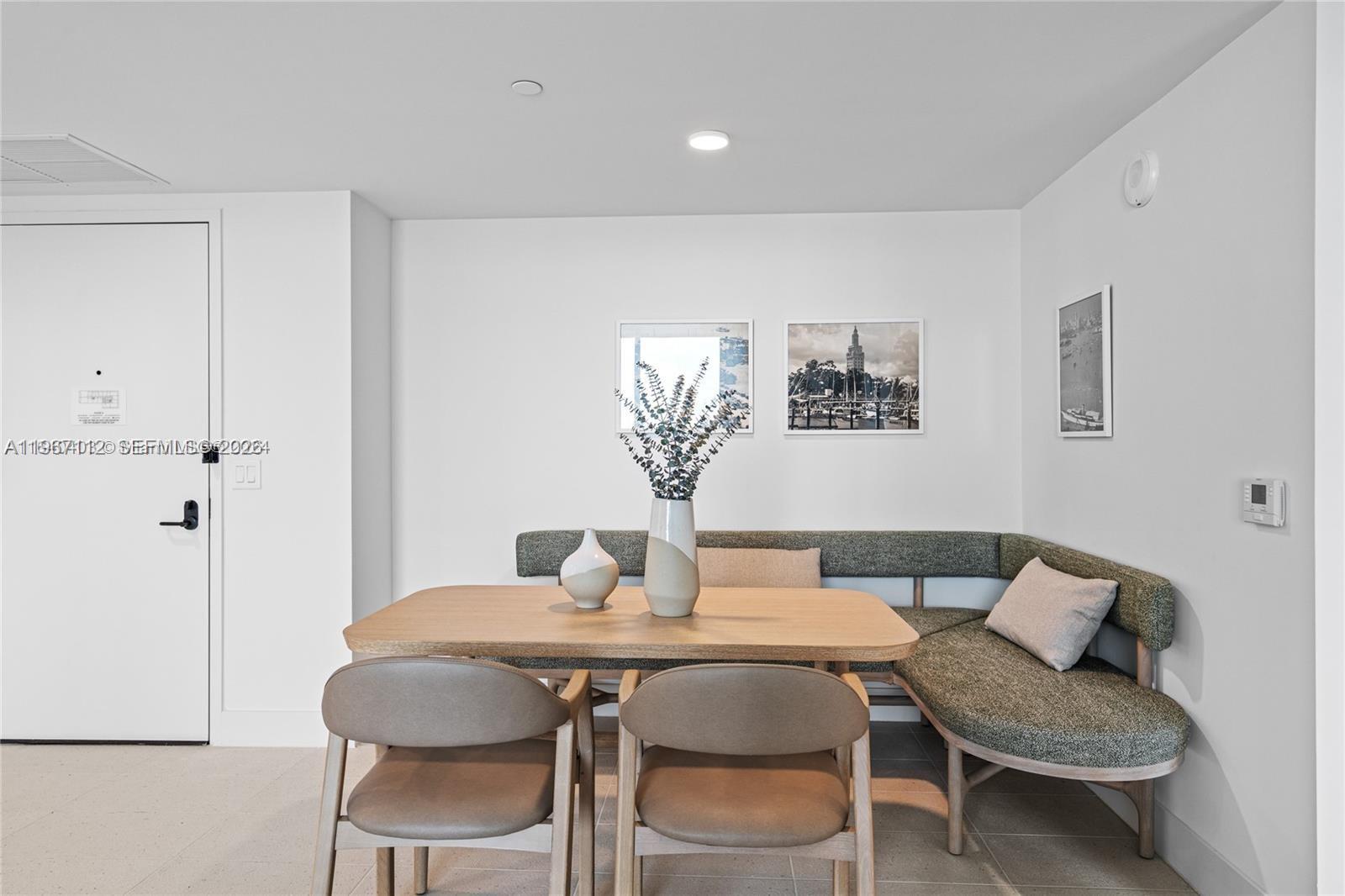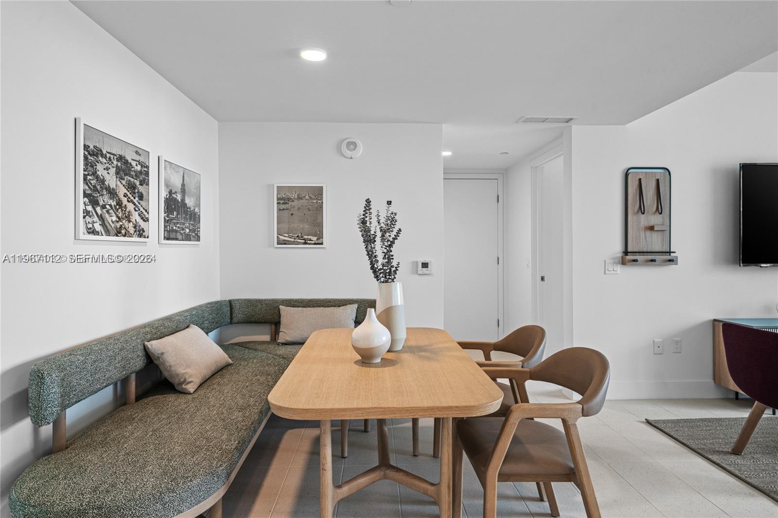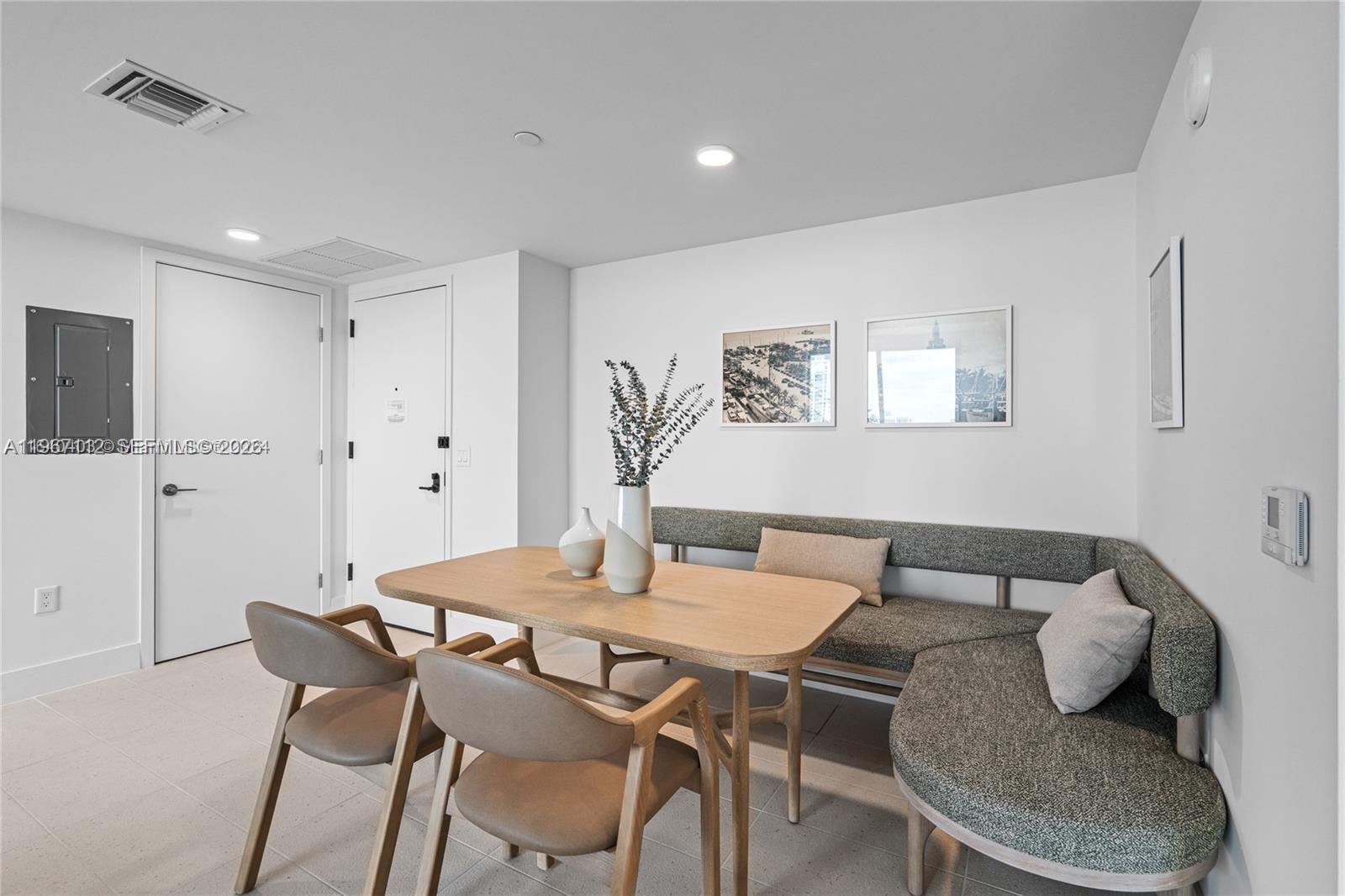 Natiivo/Gale Residences presents a brand new, spectacular 2-bedroom unit featuring a north-facing balcony. This fully furnished residence boasts an equipped kitchen and a TV in every room, designed with elegant West Elm furnishings. Amenities include a swimming pool with a bar overlooking Biscayne Bay, a steak restaurant, a speakeasy bar, a hammam, spa/sauna facilities, steam treatment rooms, a business center, a party room, and a gym with stunning views of Biscayne Bay. Enjoy 24-hour concierge and valet parking services. Conveniently located just one block from Bayside and the Miami World Center, you'll find shopping and dining options nearby. The Brightline train station, connecting to Orlando, is only a few blocks away. One Valet Parking included.