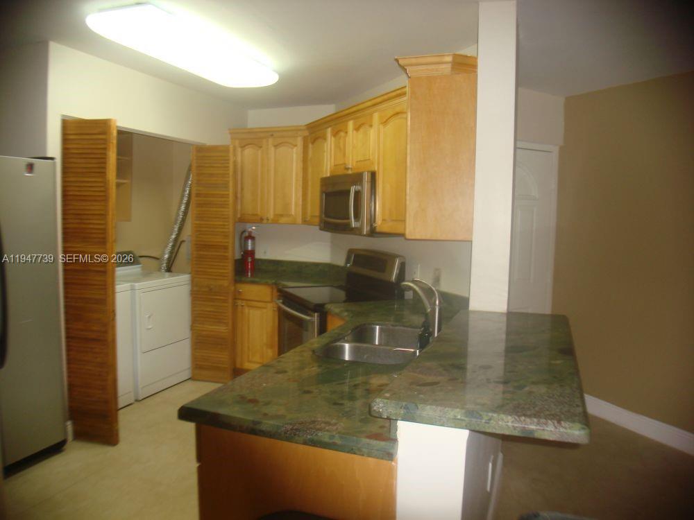 RENTAL PAYMENTS INCLUDES: WATER, SEWER, TRASH, AMENITIES, PROPERTY TAXES, AND CONDO ASSOCIATION . AVAILABLE by February 21, 2026. Just professionally painted and cleaned. Washer and dryer inside unit. Penthouse with high ceilings. All buildings in the complex are being painted. Tankless water heater. Remodeled Apartment for 2/2 split bedrooms. Unit located on 3rd Floor. Stainless steel appliances. New Central AC, range with oven, microwave, exotic granite countertops, washer, dryer. Flooring: Ceramic tile all over. Large balcony facing the pool and club house area. Gated community with swimming pool, Jacuzzi, and gym. Complex is centrally located only 1-minute-walking distance to supermarkets, pharmacies, restaurants, banks, County Village Park across street. Easy access to Florida Turnpike, I-75, Palmetto Xways.