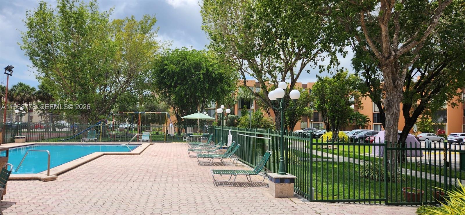 Bright and open one bedroom plus a den apartment in Versailles Gardens II, a gated community centrally located. This unit comes with a washer/dryer inside the unit, central A/C, tiles and laminated flooring. Security gard at entrance. Many ammenities such a pool, children playground,a clubhouse/community room, tennis and basketball courts and plenty of green areas for walking. It has one assigned parking space plus guest parking is available as well. Walking distance to many stores, supermarkets, Walmart, LA Fitness and restaurants. Few minutes drive to Mall of the Americas, International Mall and the Dolphin Mall. Close to expressways.