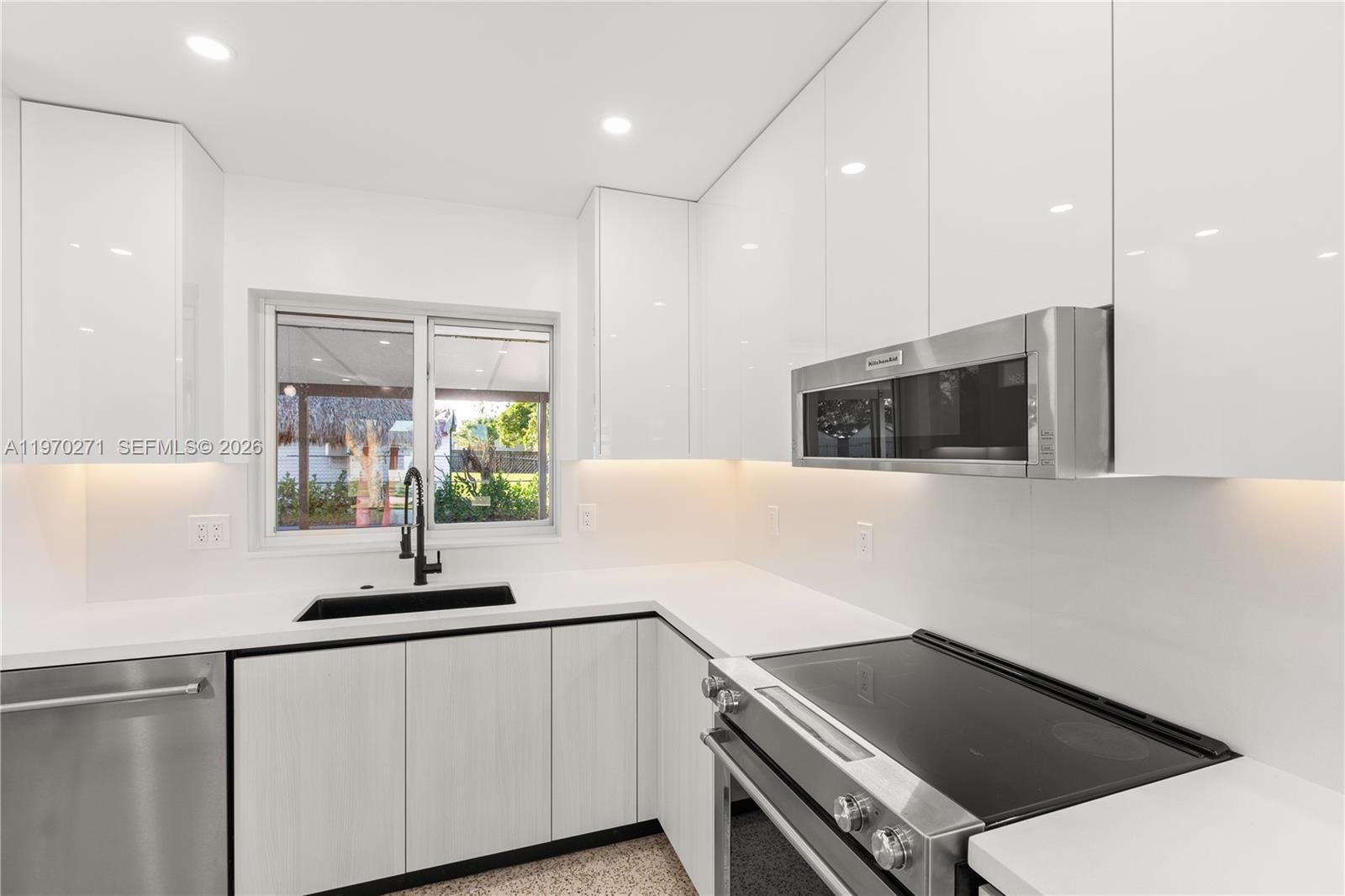 Immaculate 4-bedroom, 3-bath home in a quiet neighborhood and a great school district. Be the first to enjoy this beautifully natural, spacious home with amazing natural light. Fully remodeled, with fine finishes and amazing terrazzo floors. Quartz countertops and central island, as well as new appliances and fine cabinetry in an open plan. This home is special, full of good energy and with a large yard. Anodized impact windows and doors. Freshly landscaped and turn key. Once you step in the door you will understand…you are home!