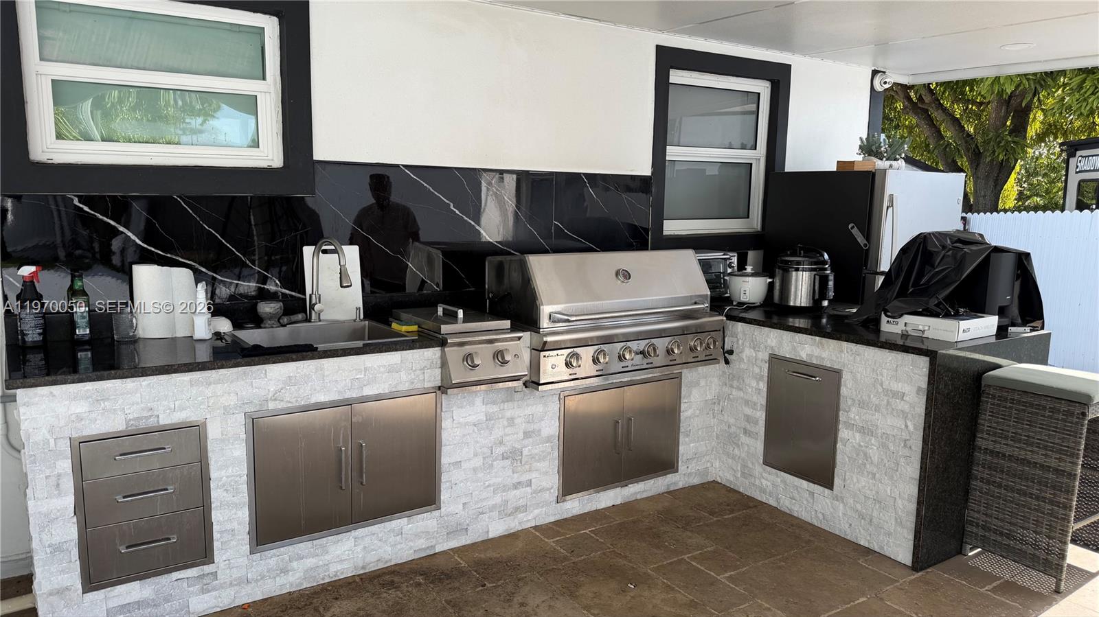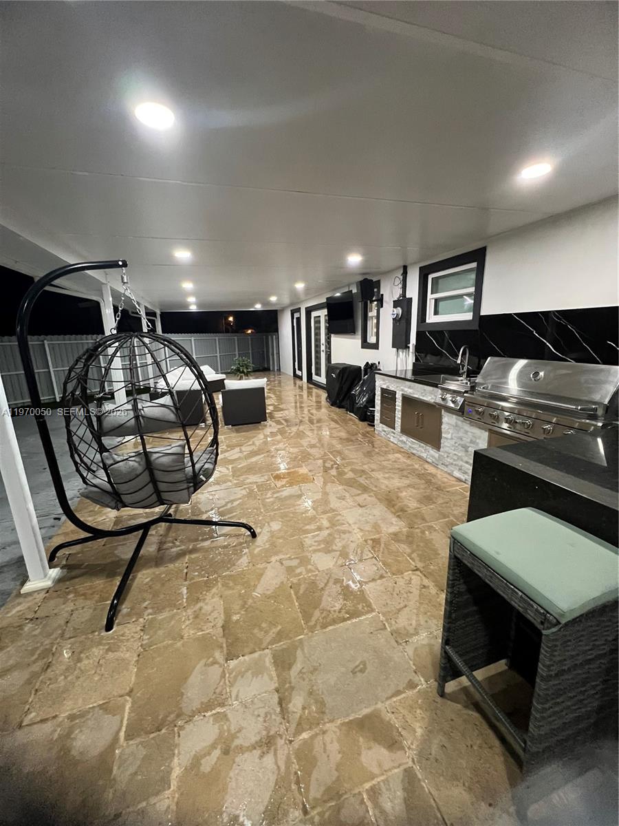 Completely remodeled 3 bedroom 1 bath home for rent! Situated on a spacious corner lot, this fully fenced property offers privacy and security. Features include custom closets, a huge driveway with ample parking, and a large backyard with an outdoor kitchen and an additional bathroom for added convenience, perfect for family entertaining. Laundry area with a washer and dryer conveniently located in the patio. The exterior offers plenty of lighting throughout, enhancing a nighttime ambiance. No HOA and fast approval. Ready to move in: April 1st.