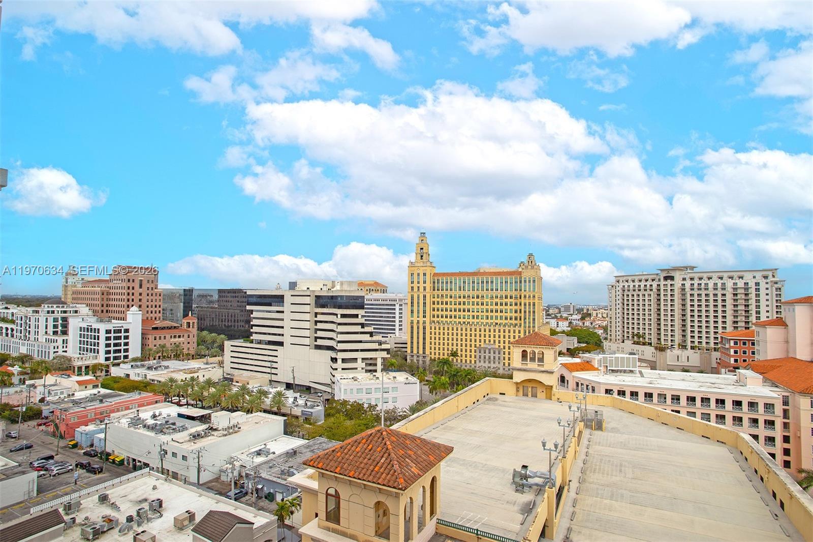 TEN ARAGON Lower Penthouse Only 1BR with TWO Parking Spaces. Rare lower penthouse in the heart of Downtown Coral Gables the only 1-bedroom in the building that includes two assigned covered parking spaces. Top-floor residence with expansive city views and abundant natural light. White kitchen with quartz countertops, glass tile backsplash, and brand new stainless-steel appliances. Neutral slate-tone tile throughout, spacious bath, great storage, and washer/dryer in unit.
