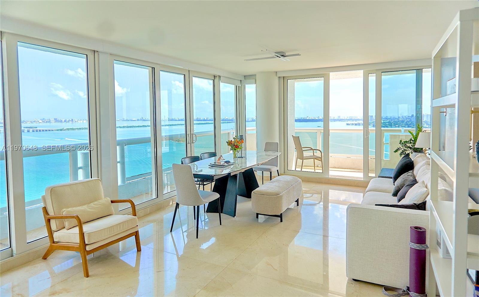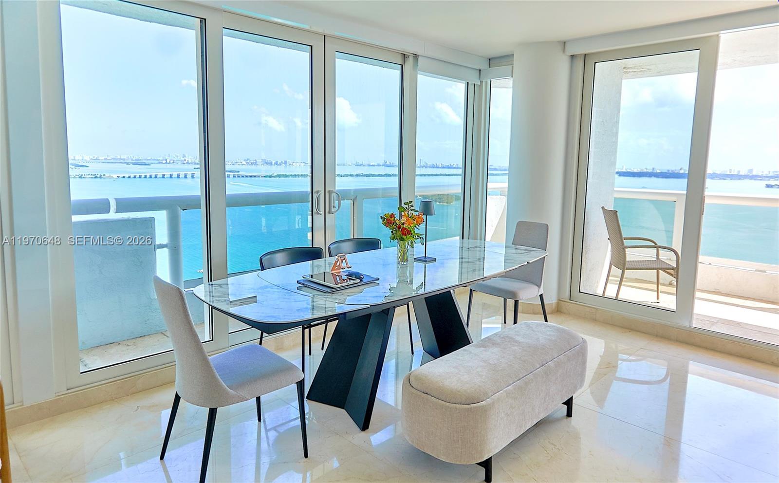 1717 N Bayshore Dr #3334, Miami, FL 33132 2 Beds | 2 Baths | 1,509 SF | 33rd Floor | $8,000/Month The best line in the building, rarely available 33rd-floor sky residence with breathtaking 180° unobstructed views of Biscayne Bay and the Miami skyline. Enjoy both spectacular sunrises over the water and glowing sunset skies over Downtown. A true wraparound panorama unmatched by any other current listing in the building. Spacious 1,509 SF open layout with floor-to-ceiling impact glass and oversized private balcony spanning the entire living area, ideal for morning coffee above the bay or evening wine with skyline lights. Bright open living/dining area with seamless indoor-outdoor flow. Modern kitchen with stone countertops, stainless steel appliances, wood cabinetry, and breakfast bar. Expansive primary suite with walk-in closet and spa-style bath featuring soaking tub and separate shower. Well-appointed second bedroom and full bath. In-unit washer/dryer. High-speed internet ready. Full-service luxury amenities include bayfront pool, hot tub, fitness center, sauna, 24/7 front desk, security, and valet parking. Premier Miami waterfront location minutes to Wynwood, Miami Design District, Brickell, Adrienne Arsht Center, and Kaseya Center. A true lifestyle residence. Live every day like a waterfront retreat. Furnished. Lease terms negotiable.