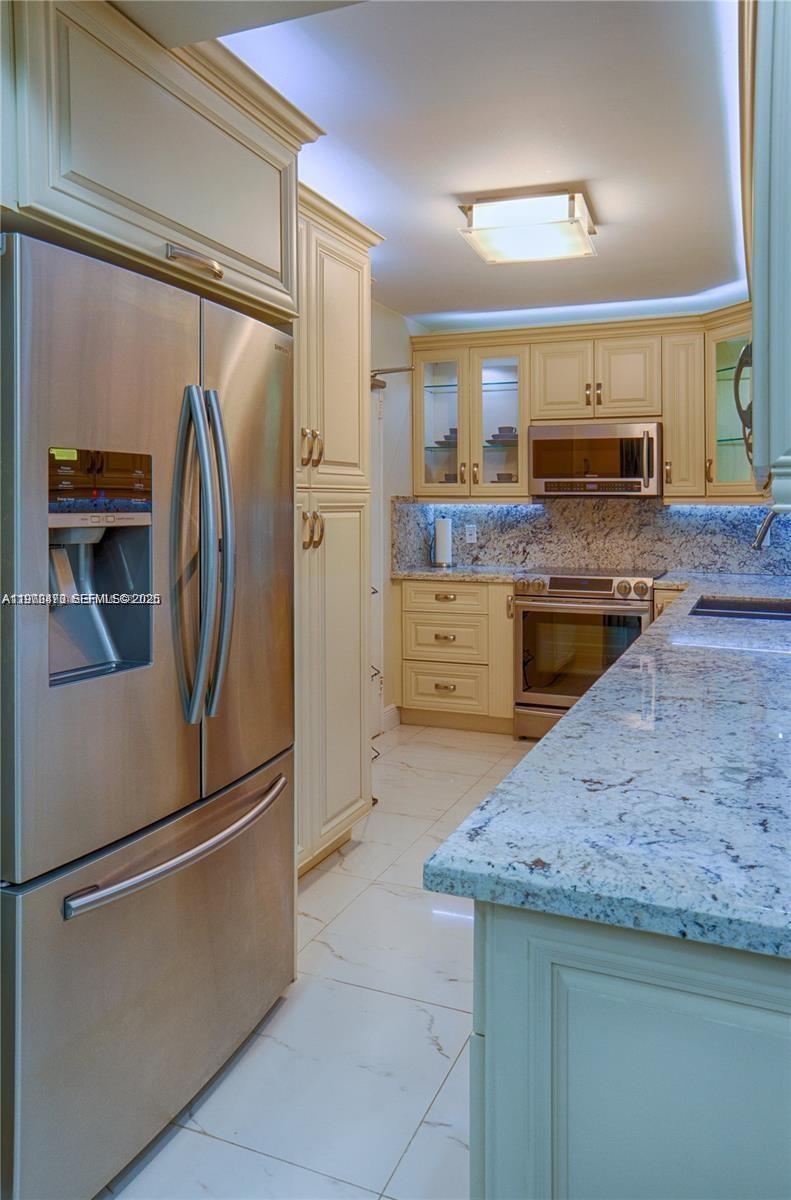 Ocean View 1-Bedroom in The Plaza of Bal Harbour Fully renovated 1-bedroom, 1.5-bath apartment at The Plaza of Bal Harbour, featuring 993 sq. ft. with breathtaking ocean views and a spacious balcony. Modern kitchen with granite countertops, elegant full-size bathtub plus independent shower, built-in bar for entertaining, open layout, and large walk-in closet. Exclusive full-service oceanfront building with 24-hour security, valet, bellman, pool, hot tub, gym, and community room. Walking distance to Bal Harbour Shops and fine restaurants. Enjoy the beach, easy to showing.