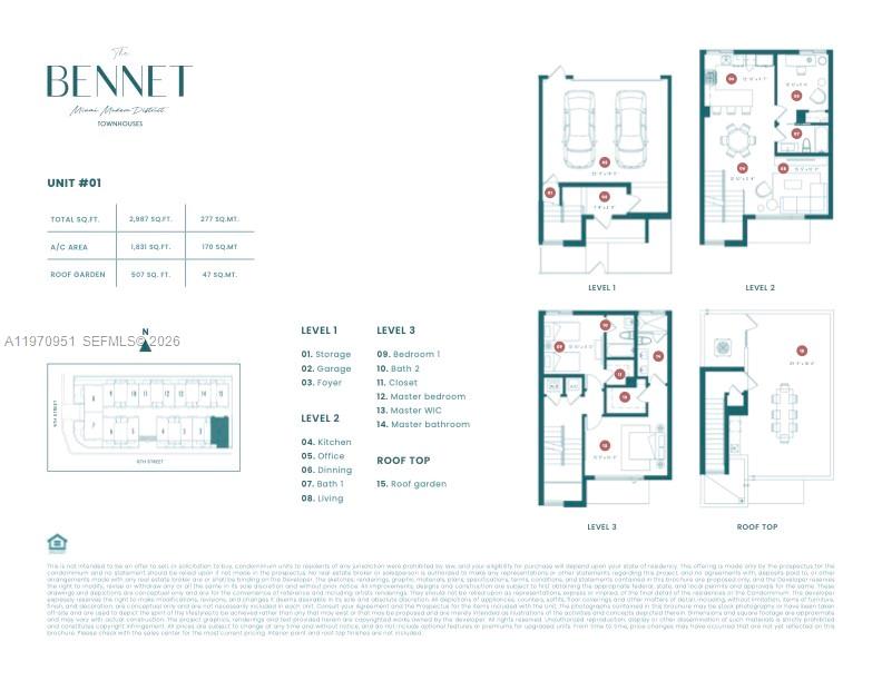 Brand New Construction! Be the first one to live in this modern townhome that offers the perfect blend of convenience and style. This corner unit offers a lot of natural light. This residence is located in Miami’s MiMo District, just minutes from Miami Design District’s vibrant dining, shops, as well as from Morningside. This 3 Bedroom/3 Bathroom townhome has over 2,300 sq. ft. in 3 different levels. At the first level you will encounter a 2 car garage, and storage; at the second level you will enjoy a Great Room designed with an open layout featuring high ceilings, and two windows next to the open kitchen, plus a Bedroom/Office and a Bathroom; at the third floor there is the Master Bedroom with en-suite Bathroom and walk in closets, as well as other Bedroom with en-suite Bathroom. This townhome has its own Rooftop Terrace.