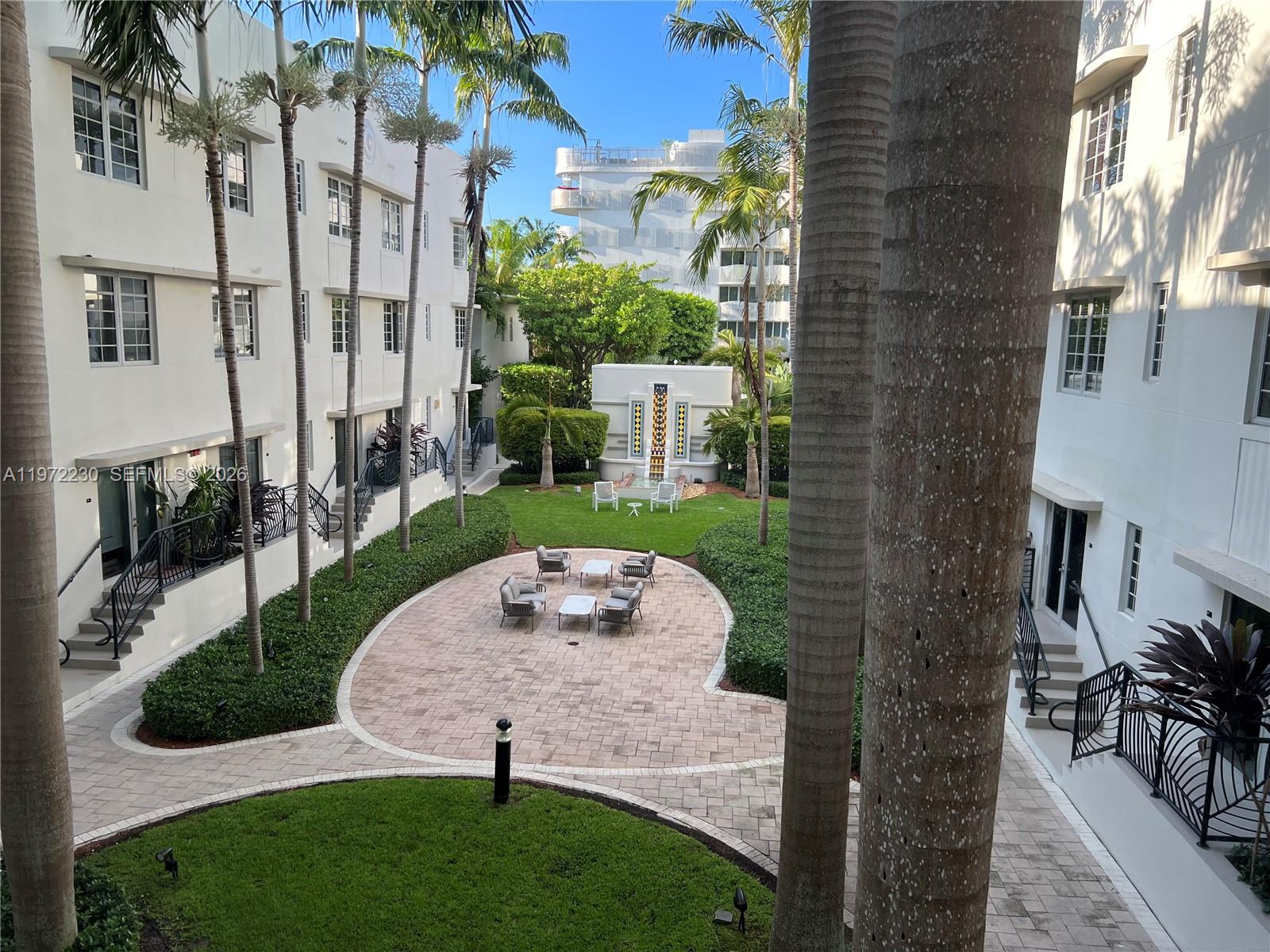 Top floor 1 bedroom apartment in the Restored Art Deco Governor building at Artecity. Great views overlooking courtyard & Art Deco fountain. Italian cabinets, stainless appliances, Washer/Dryer in unit, large casement impact windows, modern bath. Great amenities: includes beach service - 2 chairs & umbrella on the beach @ 21st St, heated pools, gym, game room, concierge, & valet parking including EV charging. Excellent location in the heart of South Beach, the cultural crossroads of art and fashion, beach life and nightlife. Close to Lincoln Road, Convention Center, Botanical Garden, Bass Museum, Collins Park, Bayshore Park, & Miami City Ballet. Comes with 1 Valet Parking Space, Price is for 12 mos, lease is minimum 6 months.