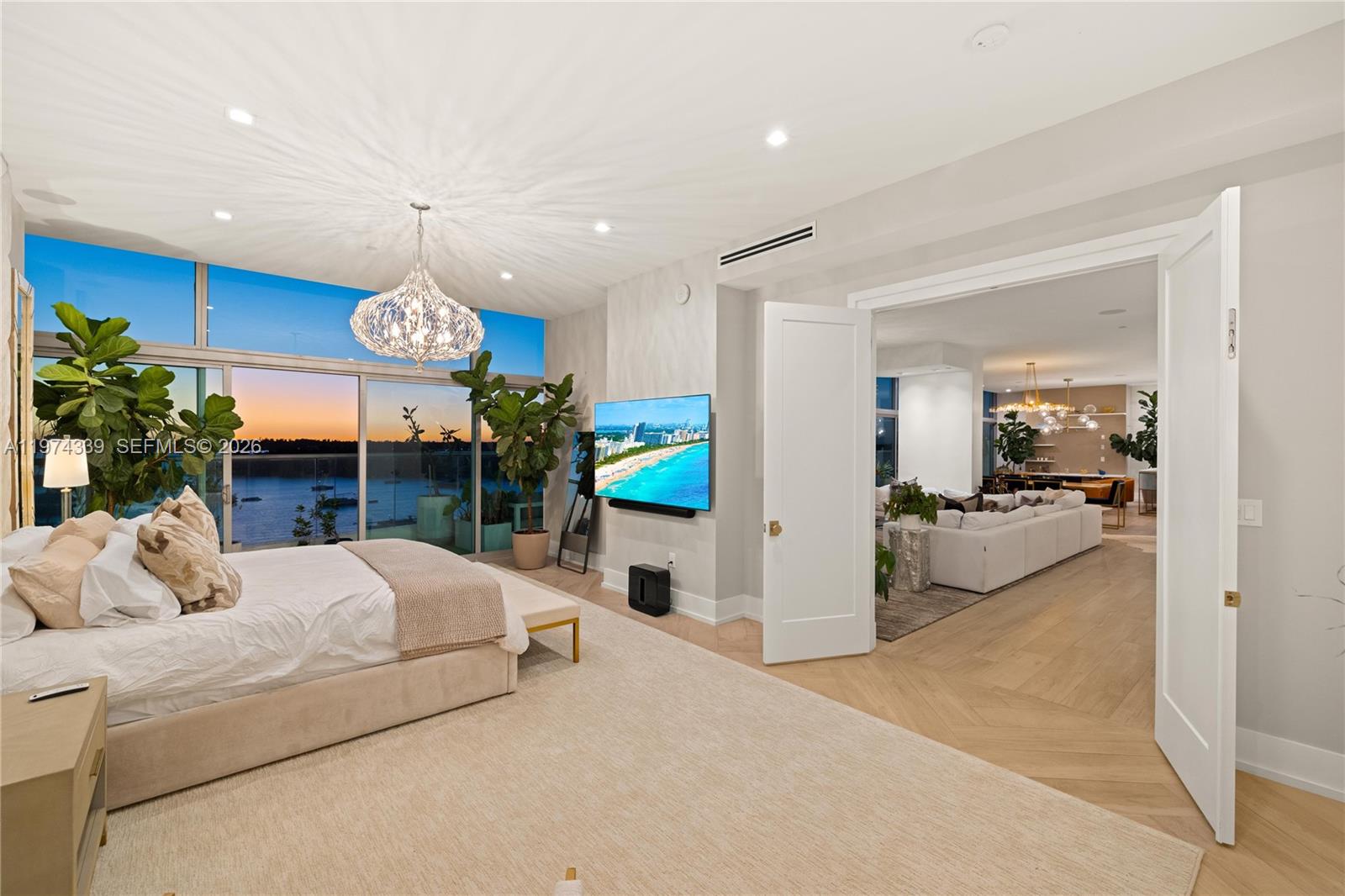 Expansive Bayfront Living in North Bay Village. Enjoy open bay views and stunning sunsets over the Downtown Miami skyline from this exceptional 3,721 sq. ft. waterfront residence. Offering four bedrooms and three and a half bathrooms, the home features soaring 10-foot ceilings and floor-to-ceiling windows that fill the space with natural light. The expansive layout provides multiple living and entertaining areas, creating seamless flow and flexibility. A defining feature is the full-length waterfront balcony spanning the entire unit — a rare offering within the building and ideal for outdoor dining, lounging, and panoramic water views. The rooftop pool offers breathtaking bay views, while the gym located next door provides convenient access to daily fitness and wellness. This boutique waterfront setting delivers privacy, scale, and space in a peaceful island environment. Located minutes from Miami Beach, MIMI District, Midtown, and Miami Shores, North Bay Village continues to evolve with new luxury developments enhancing the area’s long-term appeal. Waterfront space, light, and lifestyle — all in one remarkable residence.