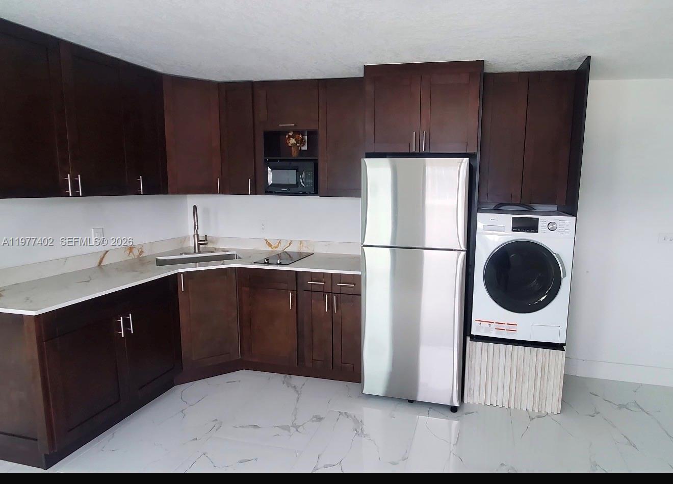 Hialeah Great Location. Beautiful 1 bedroom / 1 bathroom apartment-efficiency in excellent condition located in the heart of Hialeah with easy access to the city. Bright unit attached to a single-family home featuring modern tile flooring, an updated kitchen with wood cabinetry and stainless steel appliances, and an open living area filled with natural light. The bedroom is separate from the main living area offering additional privacy and includes laminate flooring and closet space. The unit features its own private entrance for added privacy and convenient parking available directly in front of the entrance. Utilities included: electricity, water, sewer, garbage, and internet. Close to shopping centers, restaurants, public transportation, and major highways. Easy to show. Washer/dryer inside the unit.