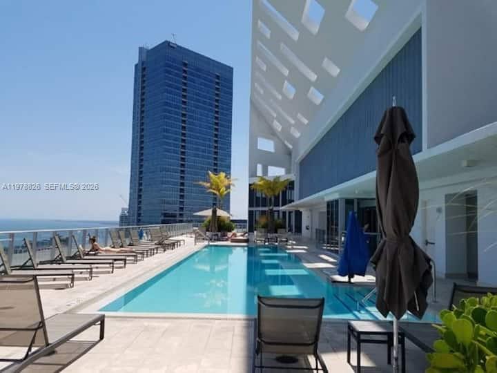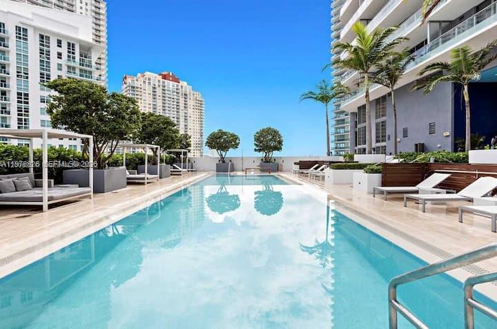 Available April 5th - Amazing Apt 2/2 .:: Brickell ::. Video Available Fully furnished and Equipped BEAUTIFUL 2 BEDROOM 2 BATH CORNER UNIT ON THE 25TH FLOOR WITH GORGEOUS WATER VIEWS! UNIT HAS PORCELAIN TILES THROUGHOUT. LARGE MASTER BEDROOM WITH WALK-IN CLOSET AND ACCESS TO BALCONY. UPDATED BATHROOMS. MODERN KITCHEN. FLOOR TO CEILING WINDOWS. LARGE WRAP AROUND BALCONY. WASHER & DRYER. 1 PARKING SPACE INCLUDED. TOP OF THE LINE AMENITIES. Live the lifestyle and enjoy on-site 24-hour concierge with valet, 7-days a week, a fully equipped fitness center with spa and 2 steam rooms, a children’s playroom, 2 full lap 50-ft pools including one in the 46th floor Sky deck with panoramic views, and so much more to enjoy the Brickell living at its very best in this luxurious resort-style community.