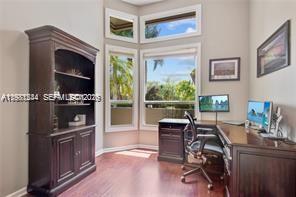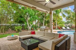 Immaculate, hot new listing. This feels like home. Your lush backyard features an outdoor living area to enjoy the South Florida lifestyle. Swim in your sparkling pool, cook on the grill, and host gatherings. Don't miss a minute of the game while watching your favorite sports on TV. This backyard has it all! The elegant interior areas feature two family rooms, a formal dining room, and an eat-in kitchen. Saturday mornings are for eating at your breakfast bar. Desirable split floor plan for the utmost privacy. With a 3-car garage and oversized driveway, this home was made for entertaining! Located within the guard-gated community of Eagle Trace, offering an optional golf course membership. Centrally located near Sawgrass Mills Mall, Publix & Costco.