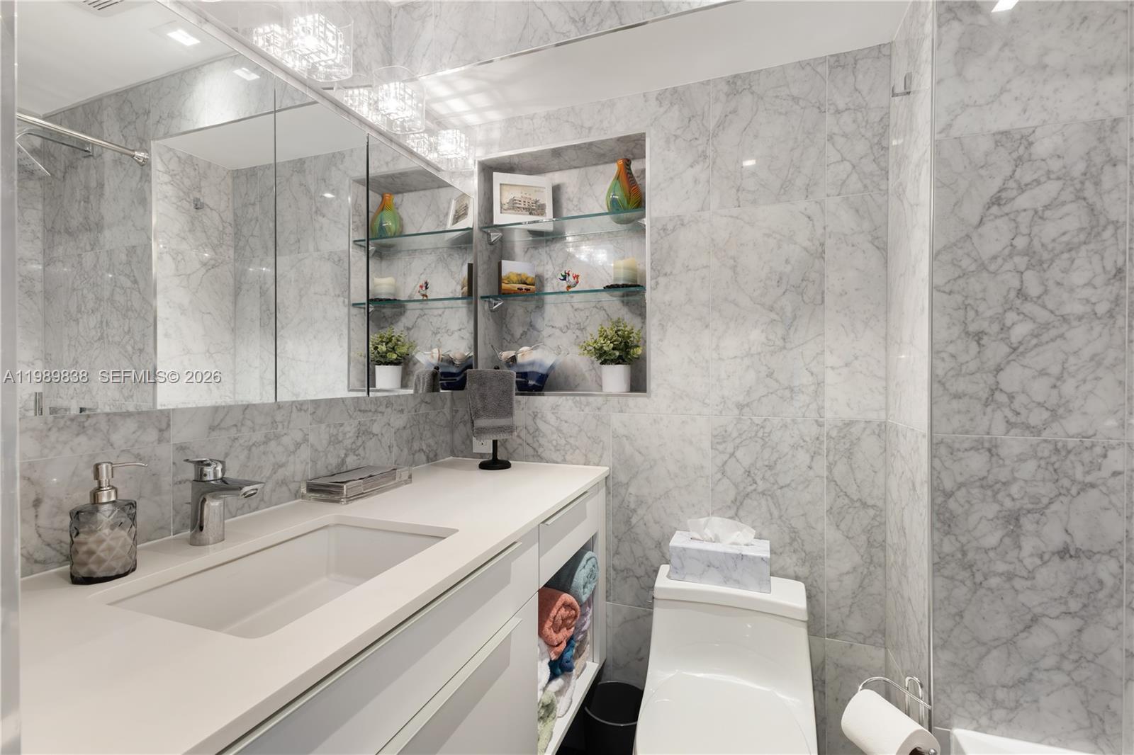 Enjoy stunning Ocean views from this beautifully Designer-remodeled 1 Bedroom 1 bathroom with Shower/Bath Tub combined, Washer & Dryer, abundant storage residence, featuring high ceilings and a private balcony that fills the space with natural light. A block from Ocean Drive and the Beach. The modern kitchen is thoughtfully appointed with pull-out cabinetry, sleek quartz countertops, and premium Bosch appliances. The unit is offered Furnished for convenience but can also be rented Unfurnished to suit your needs. One covered parking is available for an additional $125/month, and monthly pest control service is included. A perfect blend of style, comfort, and coastal living in Miami Beach.