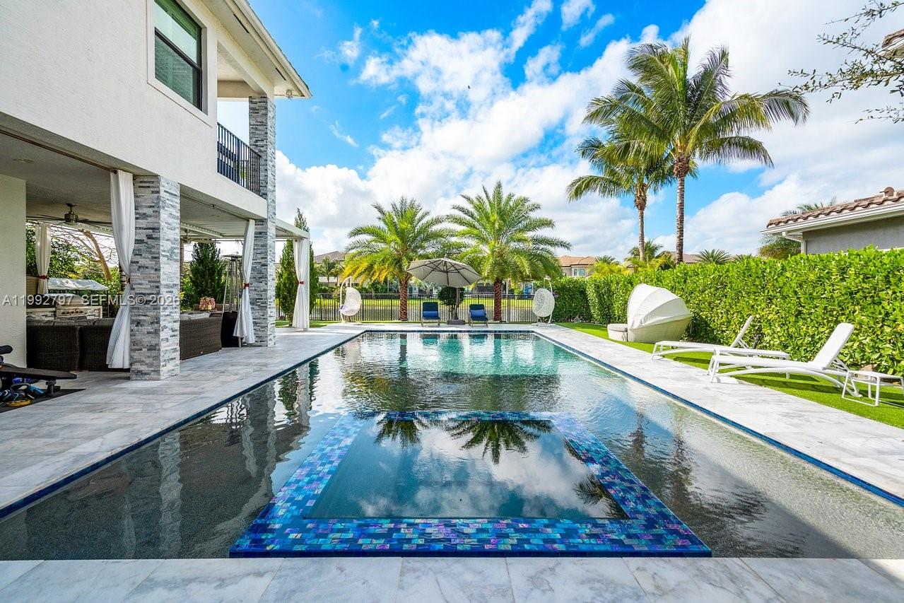 SEVEN BRIDGES! ENTIRE HOUSE IS UNDER GENERATOR. Super long driveway leads to an updated Bossano Model with spectacular lake views featuring 5 bedrooms plus office and media room. European Sauna. Immaculate backyard area. Perfect for entertaining. Outdoor kitchen, freshly completed landscaping and pool. Amazing community and amenities MUST SEE